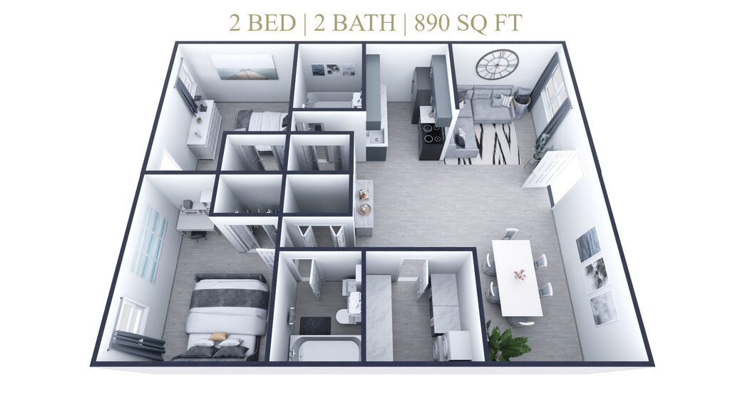 2 Beds, 2 Baths, 890 sq ftAvailable NowAvailability Details