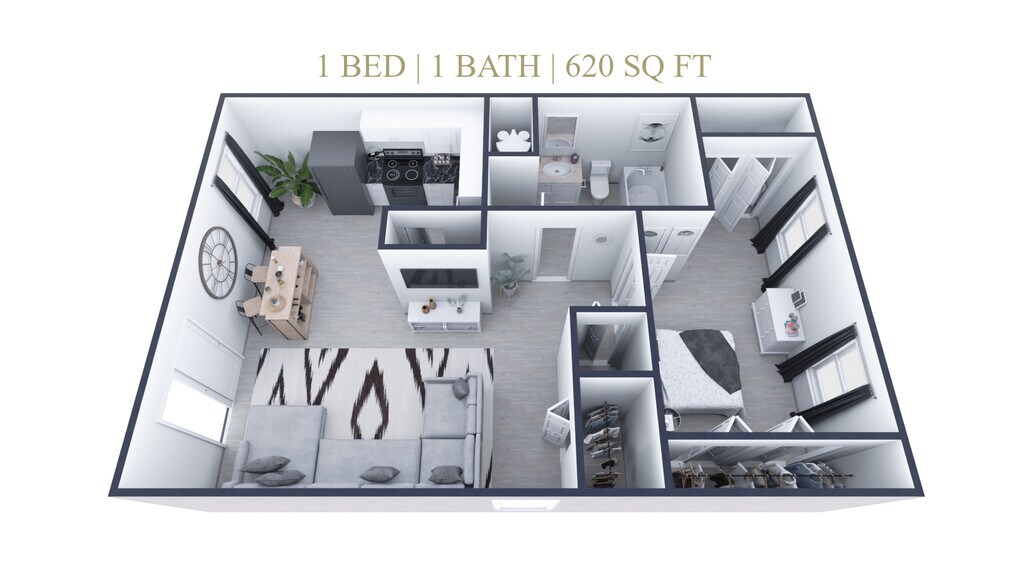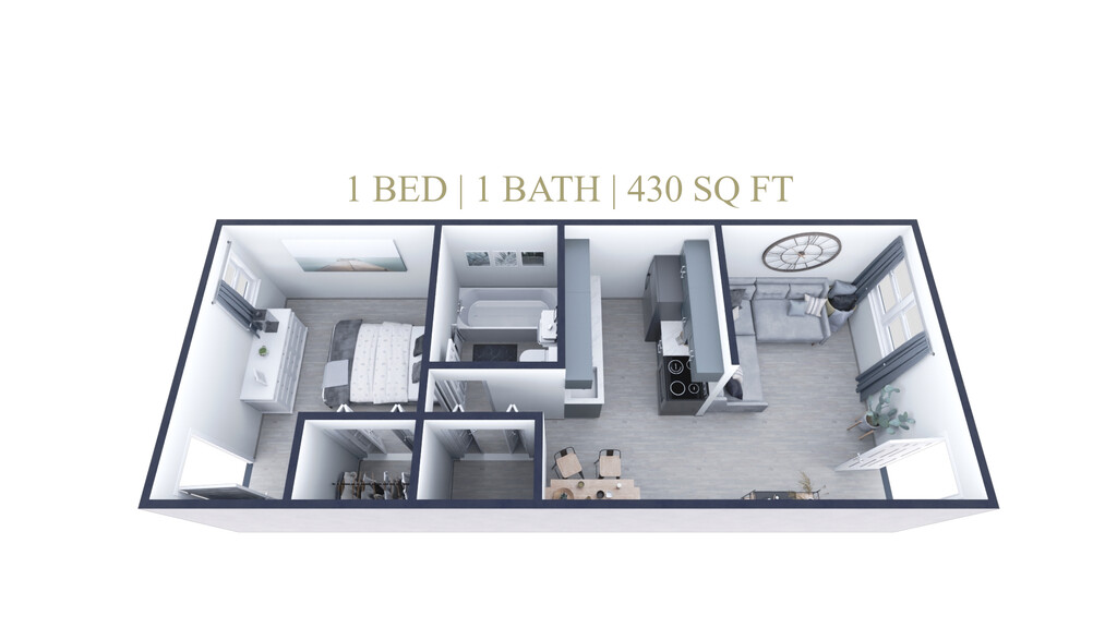 1 Bed, 1 Bath, 430 sq ftAvailable NowModel Gallery