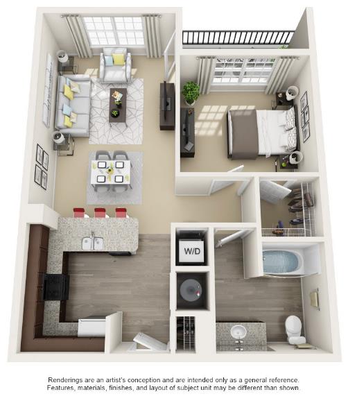 Apartment Model: A1From $1,5881 Bedroom, 1 Bath, 738 sq ftAvailable Now![]()