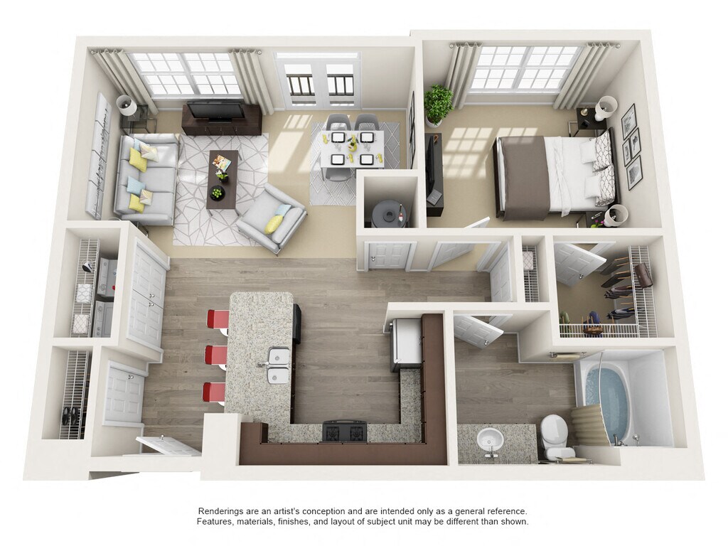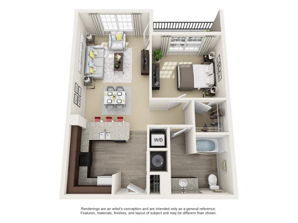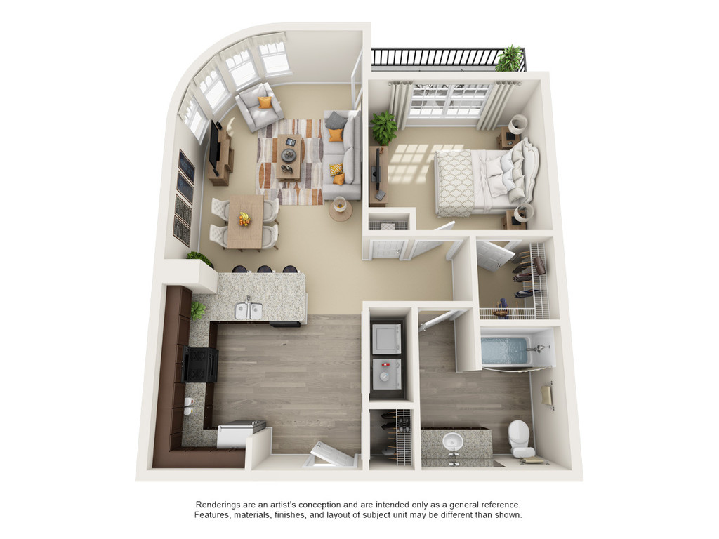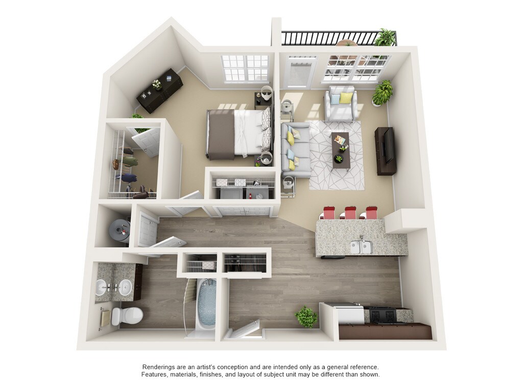 Studio, 1 Bath, 612 sq ftAvailable NowModel Gallery