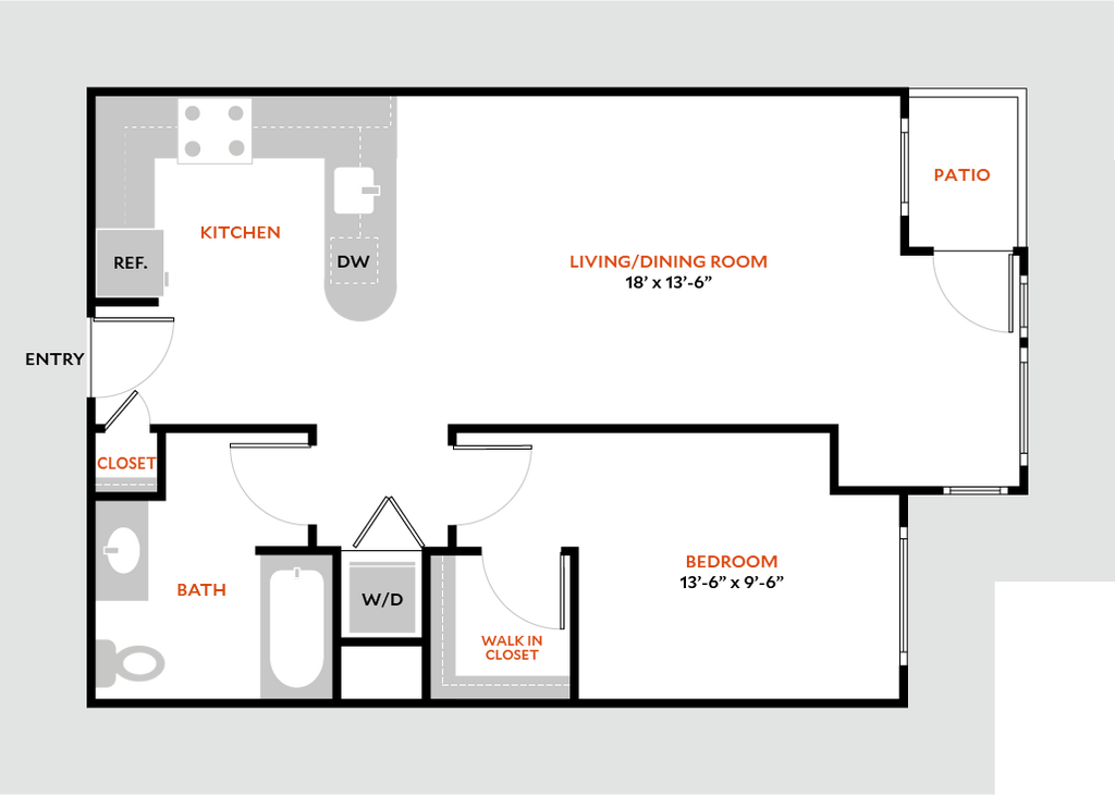 1 Bed, 1 Bath, 675 sq ftModel Gallery