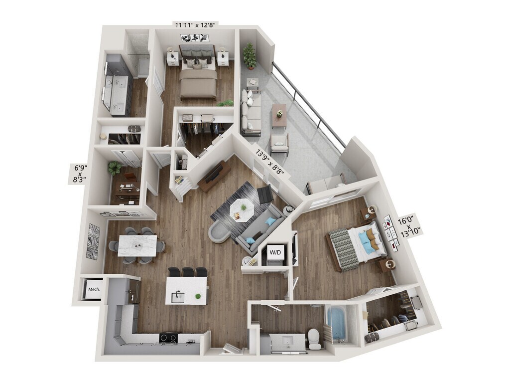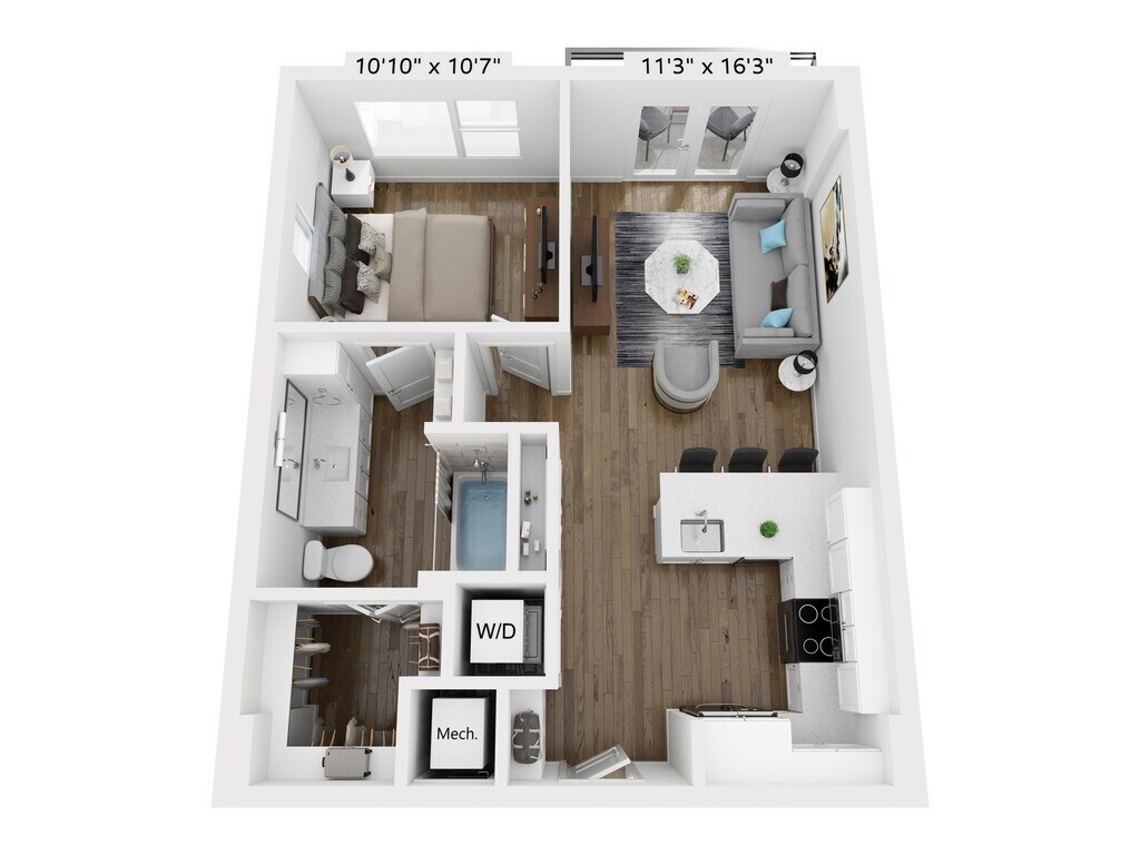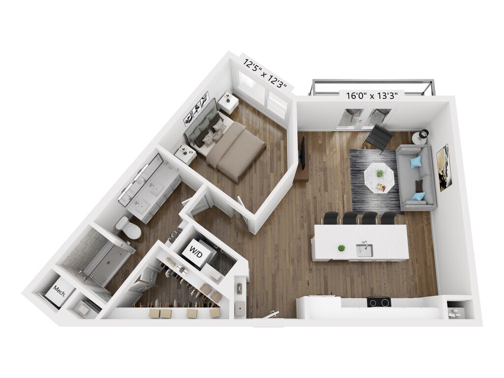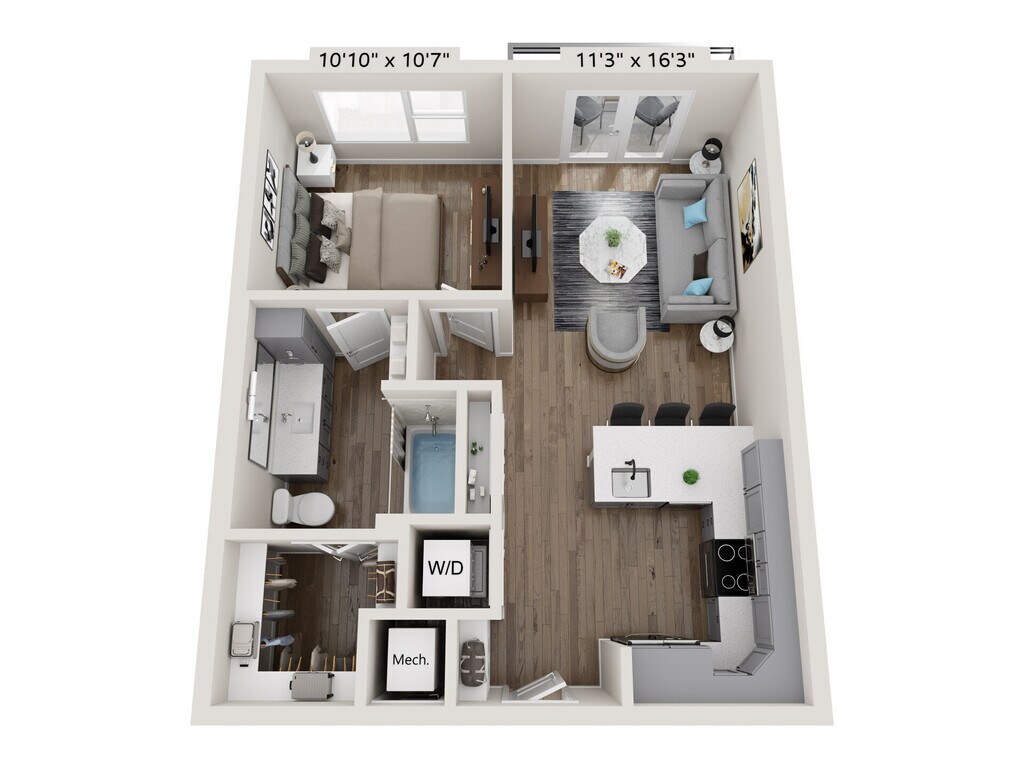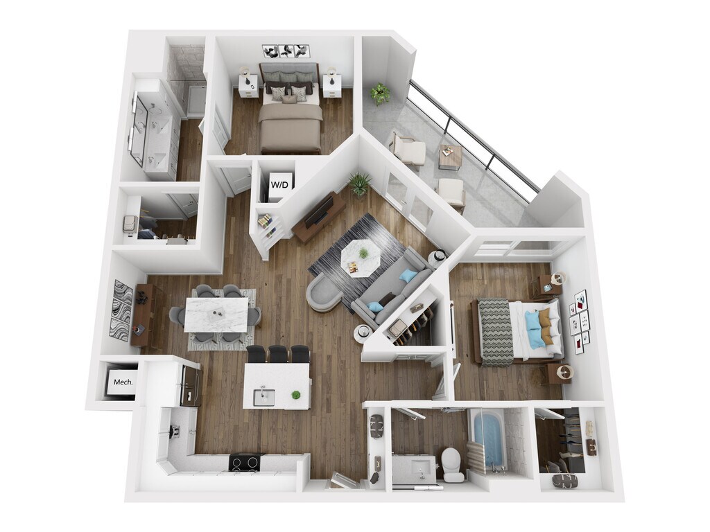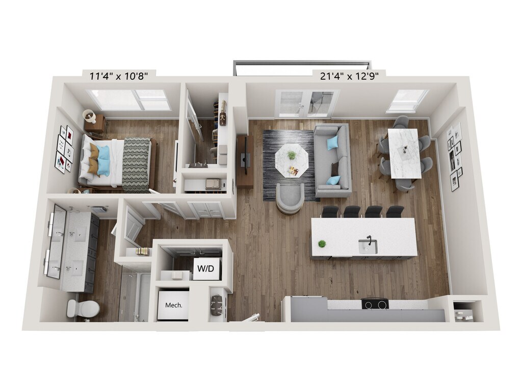 1 Bed, 1 Bath, 855 sq ftAvailable NowLargest 1 BedroomThis is the largest 1 Bedroom at this PropertyModel Gallery