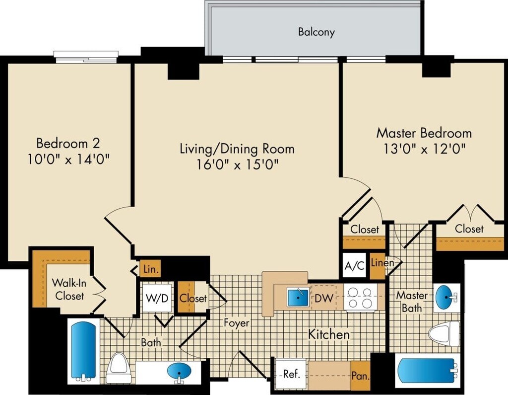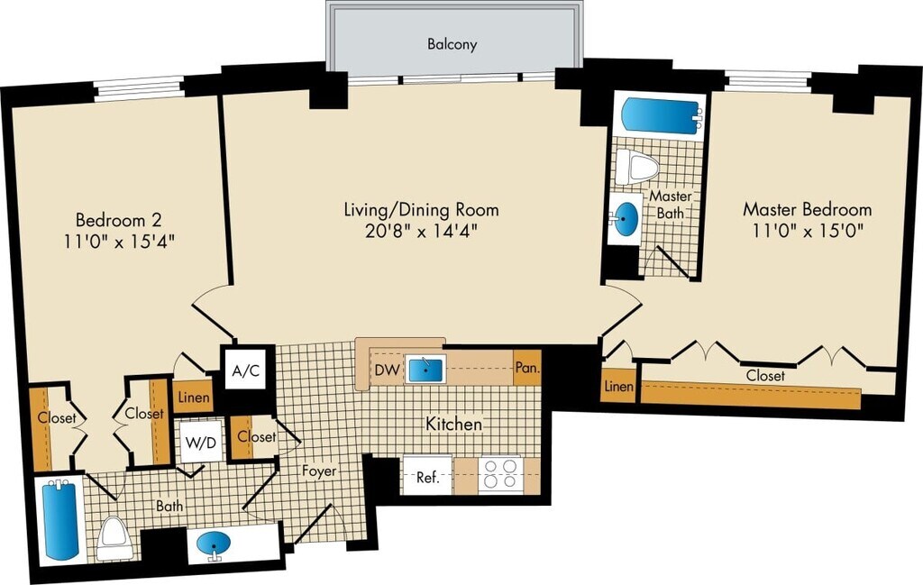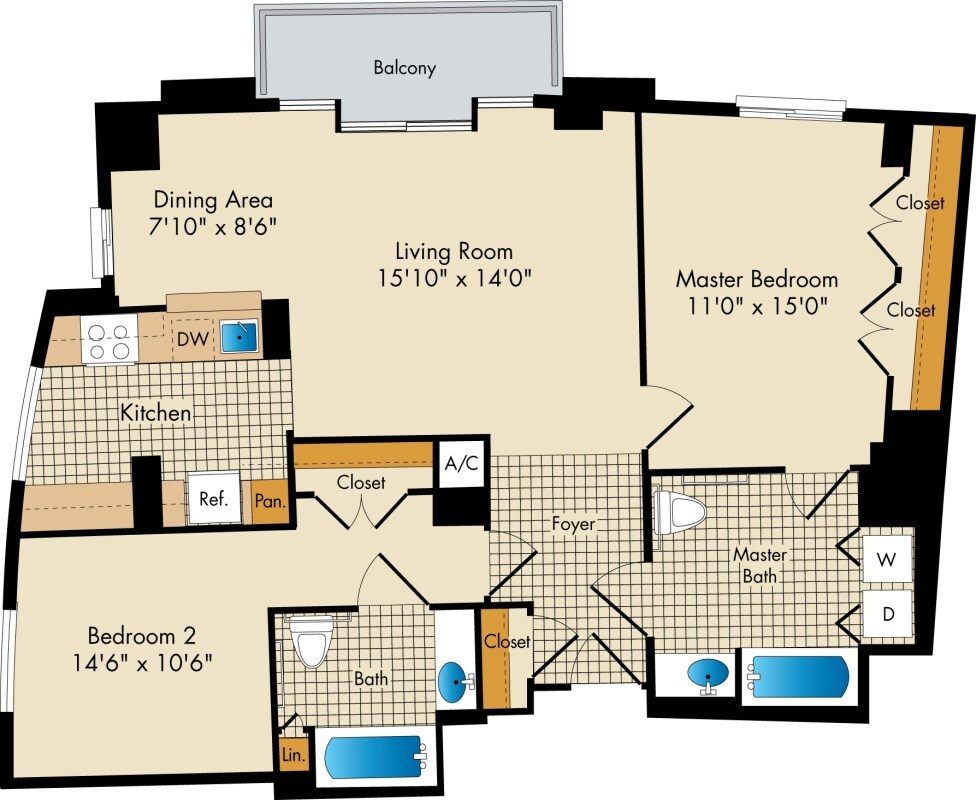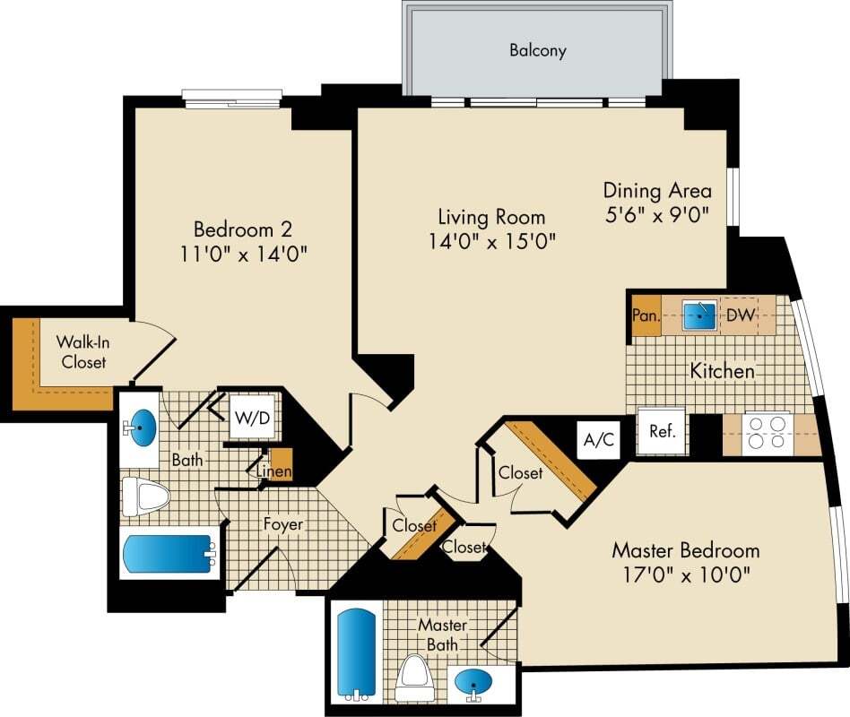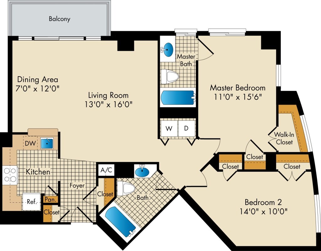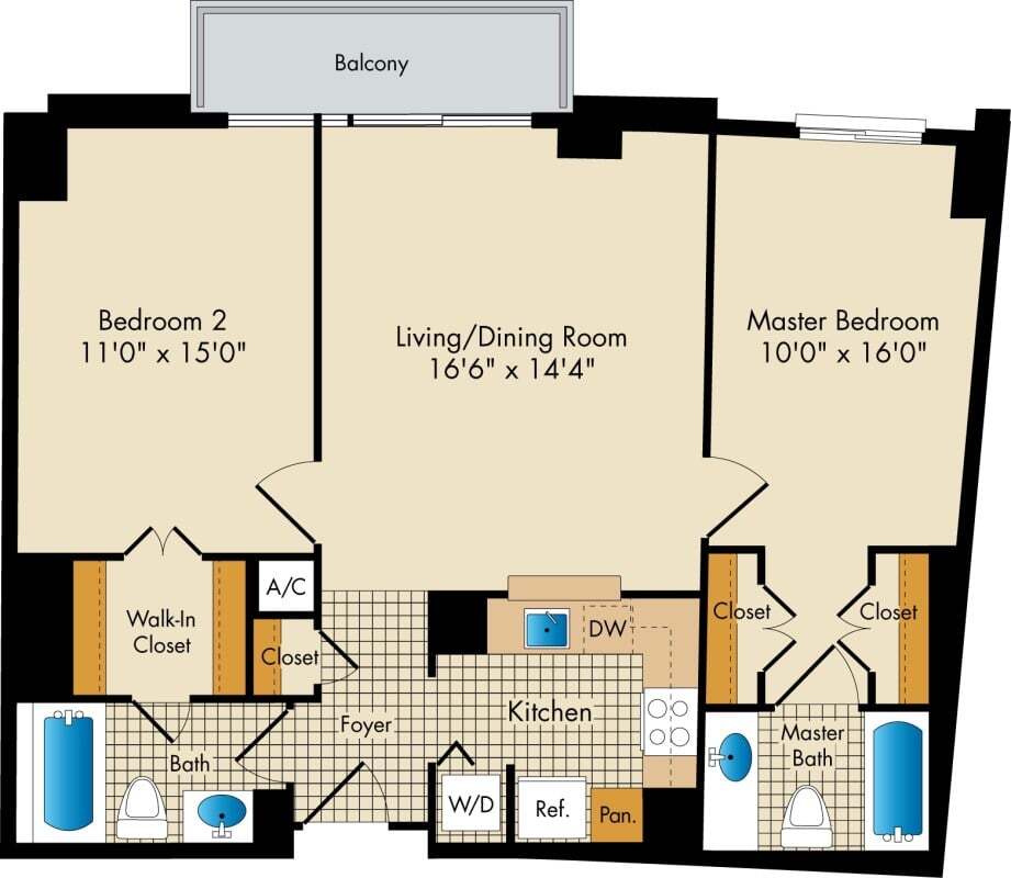 Apartment Model: WaltersCall For Rates2 Bedroom, 2 Bath, 1130 sq ftUnavailable![]() - Walters - Floorplan 1