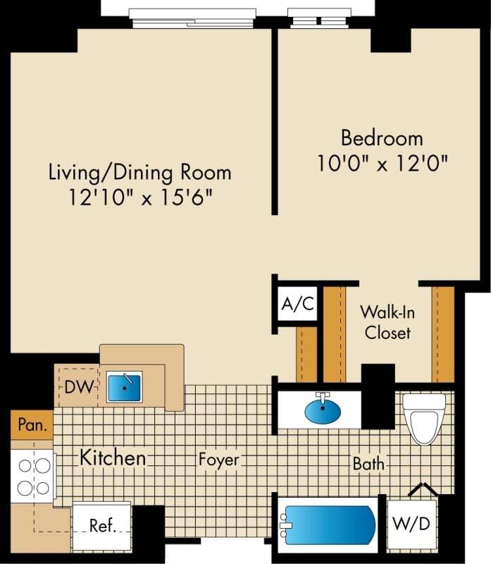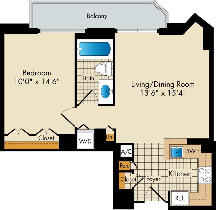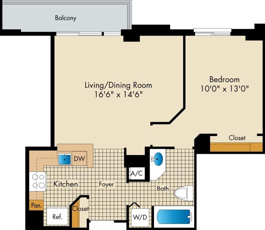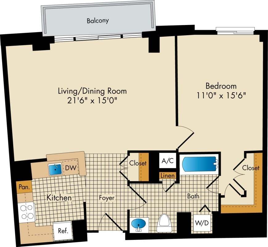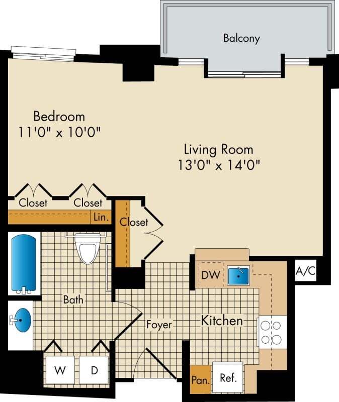 Apartment Model: BarnesCall For RatesStudio, 1 Bath, 510 sq ftUnavailable![]() - Barnes - Floorplan 1