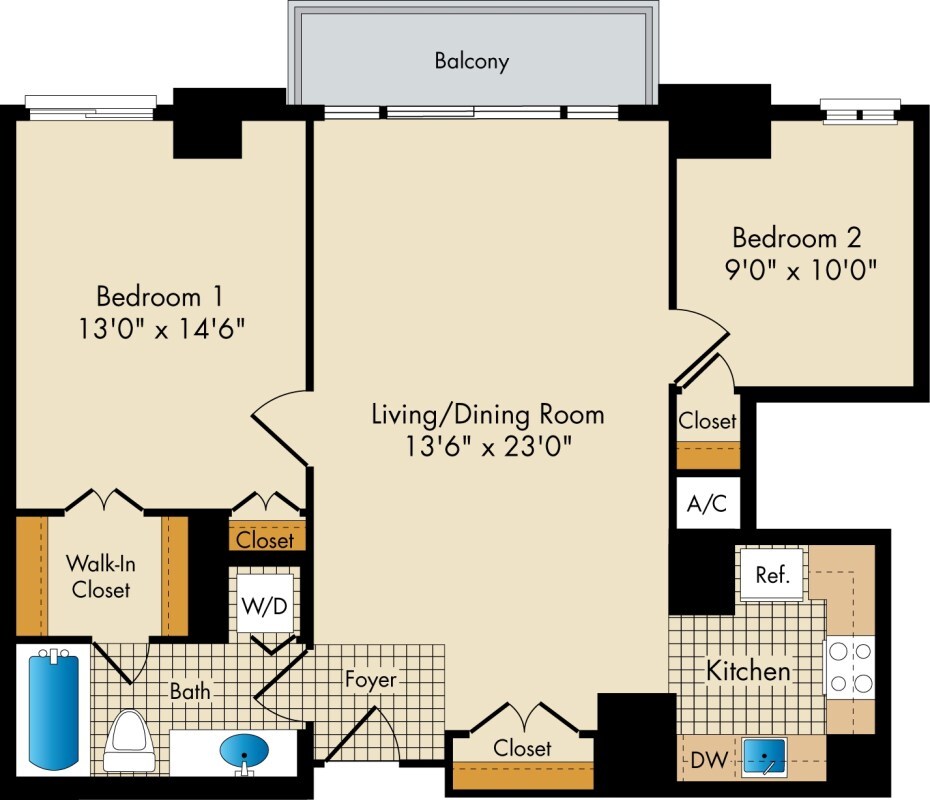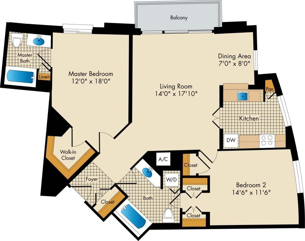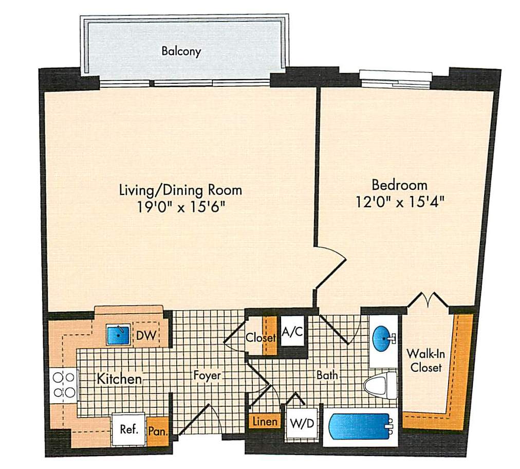Apartment Model: DevonCall For Rates1 Bedroom, 1 Bath, 745 sq ftUnavailable![]() - Devon - Floorplan 1