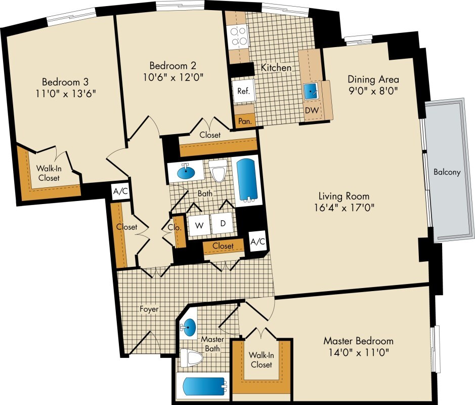 - 3 Bedrooms- Cabot3 Beds, 2 Baths, 1300 sq ft- Model Gallery- Floorplans- Availability Details- Availability Date - Unit - Sq Ft - Call for Availability - Cabot - 1300 sq ft - Model Amenities and Features- Features- Air Conditioning