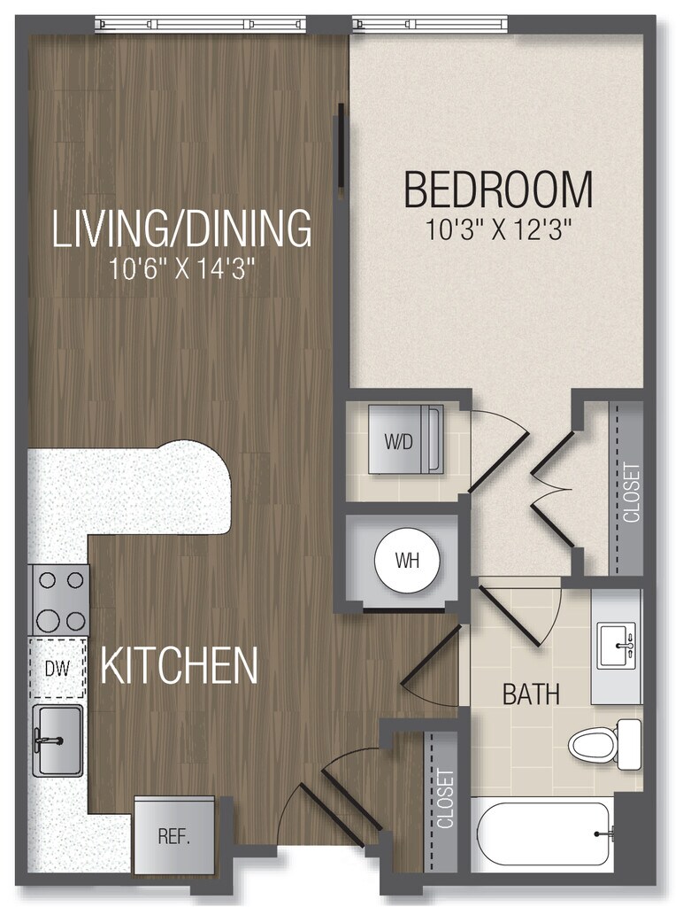 Apartment Model: A1From $1,9611 Bedroom, 1 Bath, 825-827 sq ftAvailable Now![]()