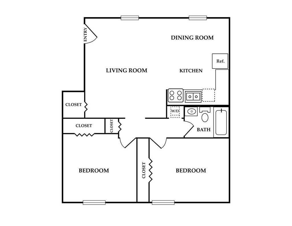 2 Beds, 1 Bath, 740 sq ftAvailable NowModel Gallery
