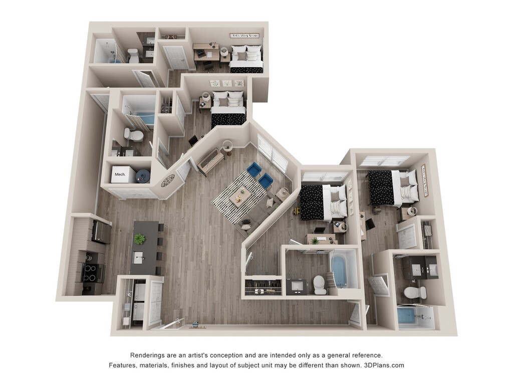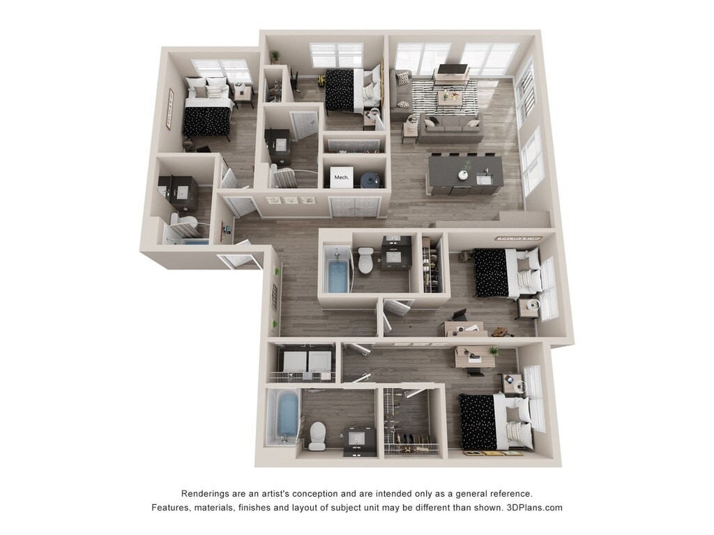 4 Beds, 4 Baths, 1554 sq ftAvailable NowLargest 4 BedroomThis is the largest 4 Bedroom at this PropertyModel Gallery