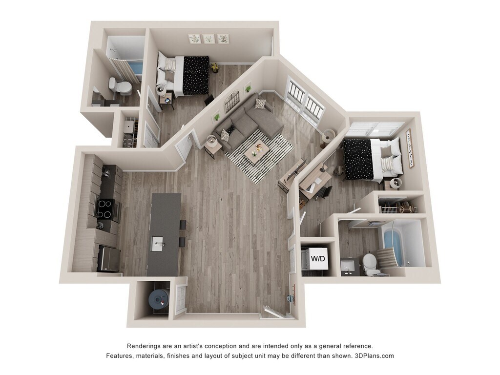 2 Beds, 2 Baths, 974 sq ftAvailable Aug 16Largest 2 BedroomThis is the largest 2 Bedroom at this PropertyModel Gallery