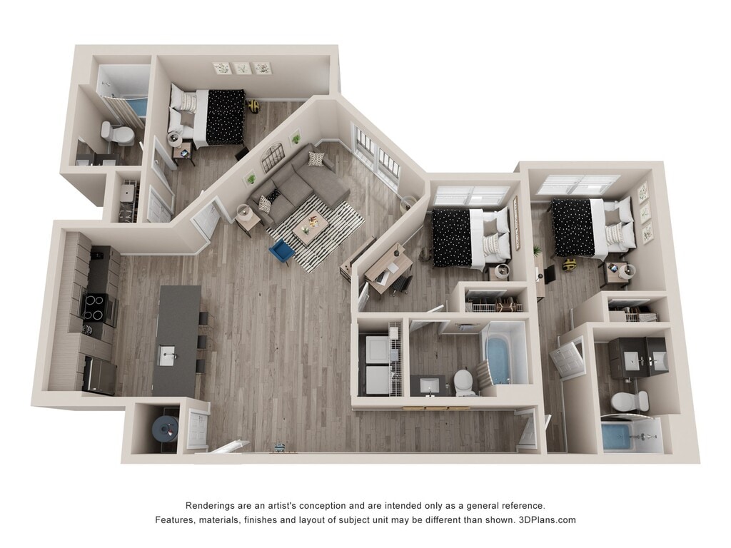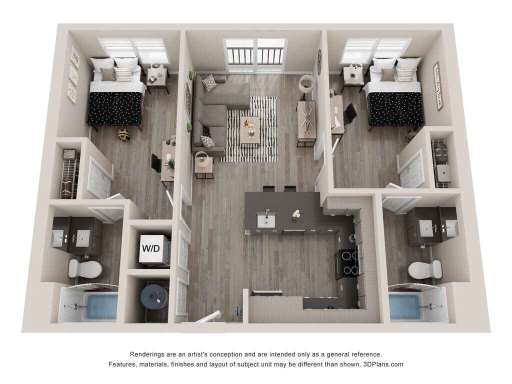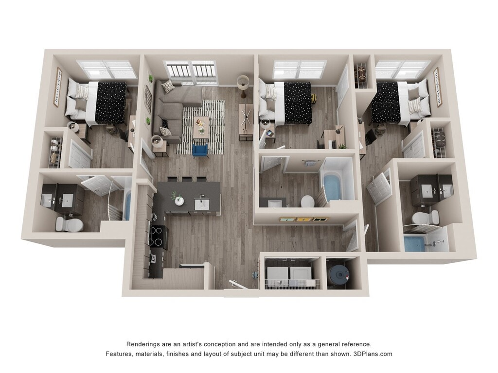 Apartment Model: C2 - 3x3From $1,1253 Bedroom, 3 Bath, 1081 sq ftAvailable Now![]()