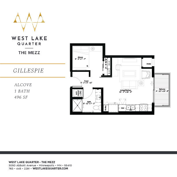 Gillespie - ALCOVE - Floorplan 1 Apartment Unit: 209Apartment Model: Gillespie - ALCOVEStudio, 1 Bath, 496 sq ftAvailable Now1 Bedroom