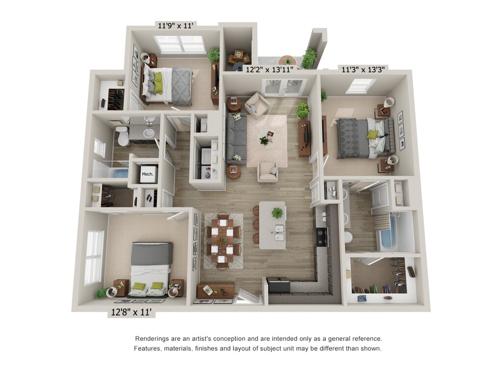 Apartment Model: StewartFrom $1,0713 Bedroom, 2 Bath, 1343 sq ftUnavailable![]()