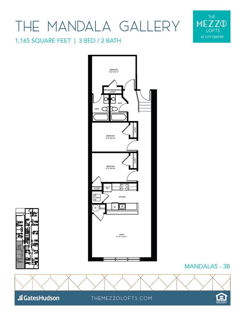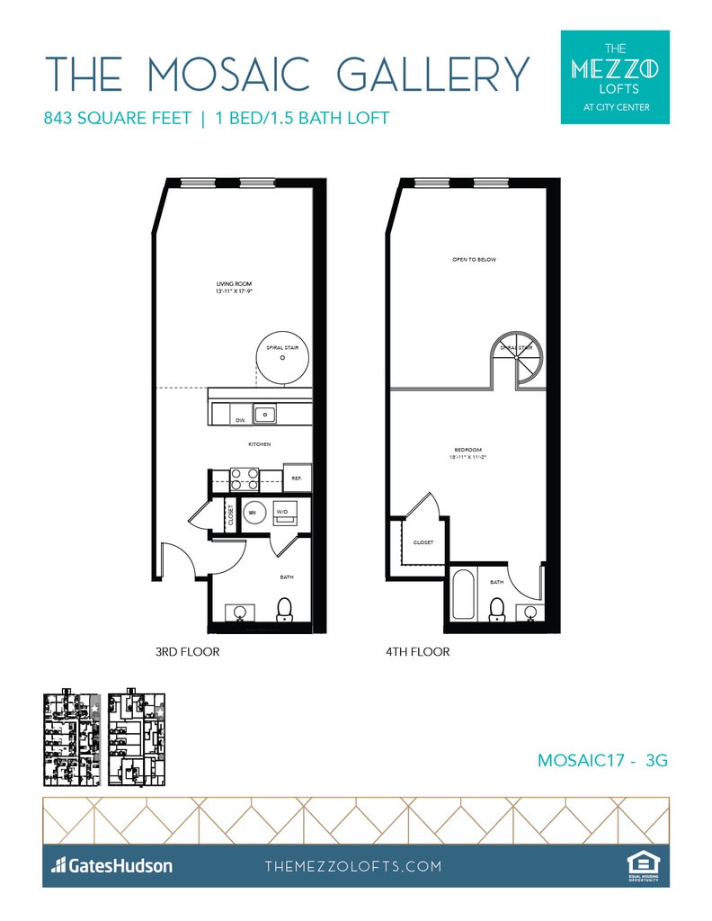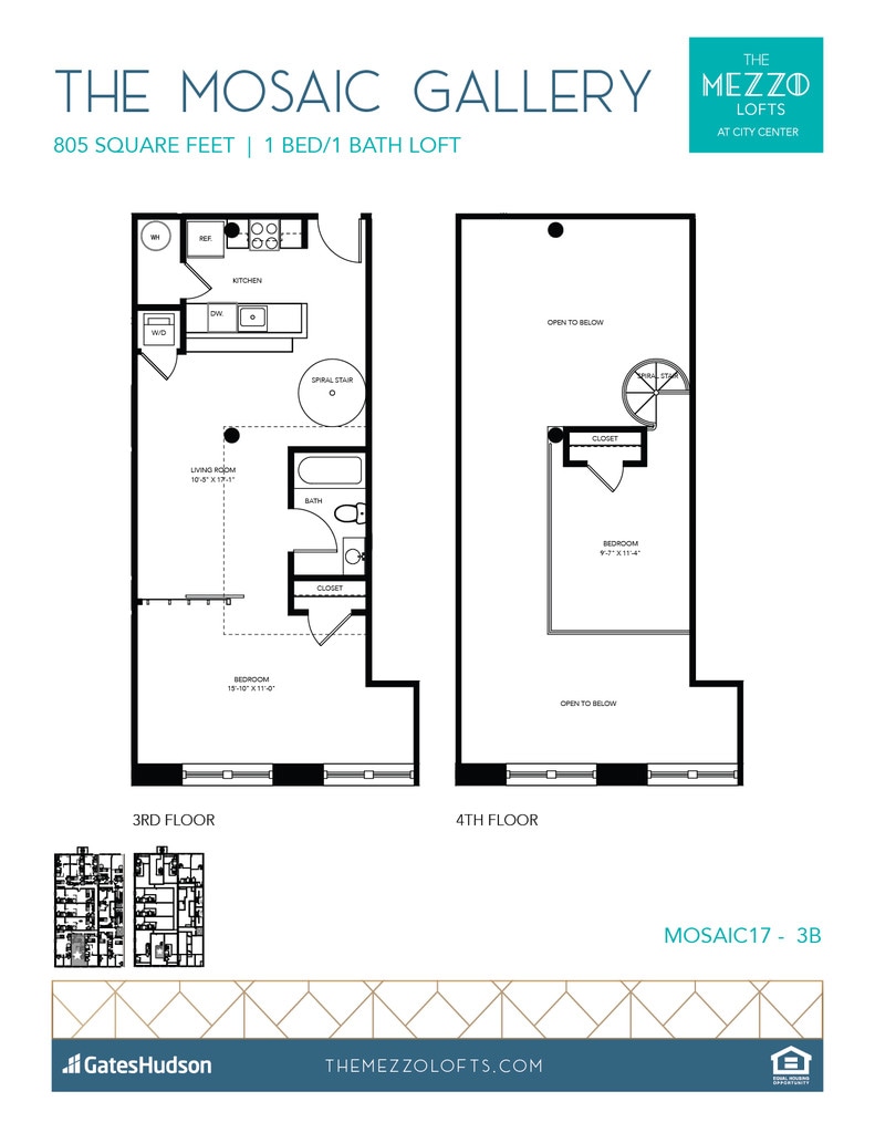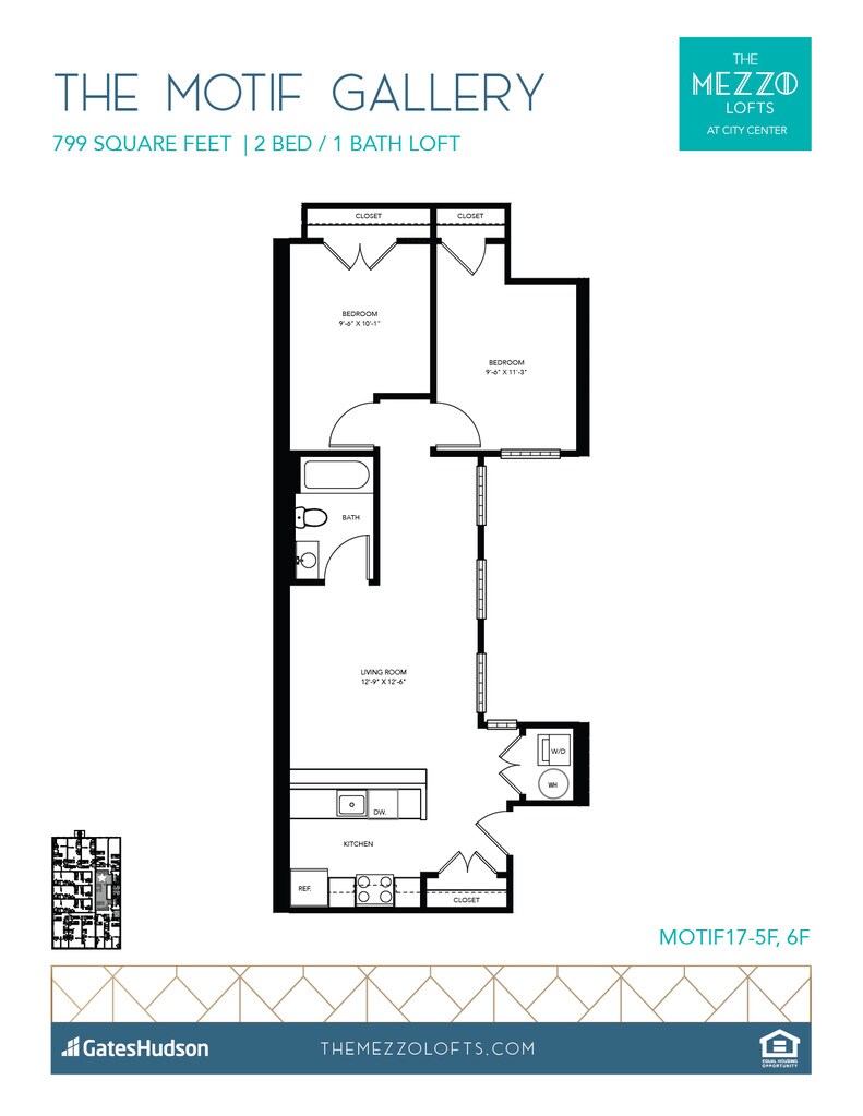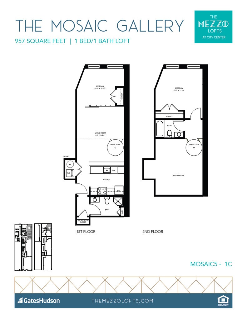 The Mezzo Lofts offers Studio to 3 Bedroom apartments starting from $970 and having 381–1,779 sq ft. Here is the current pricing and availability: