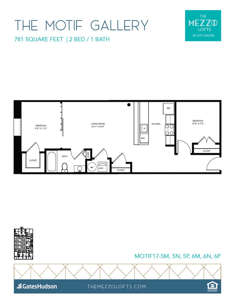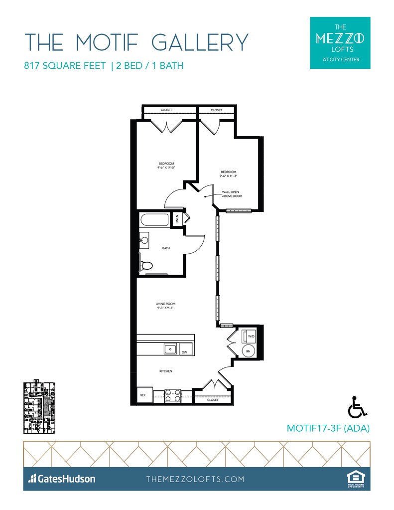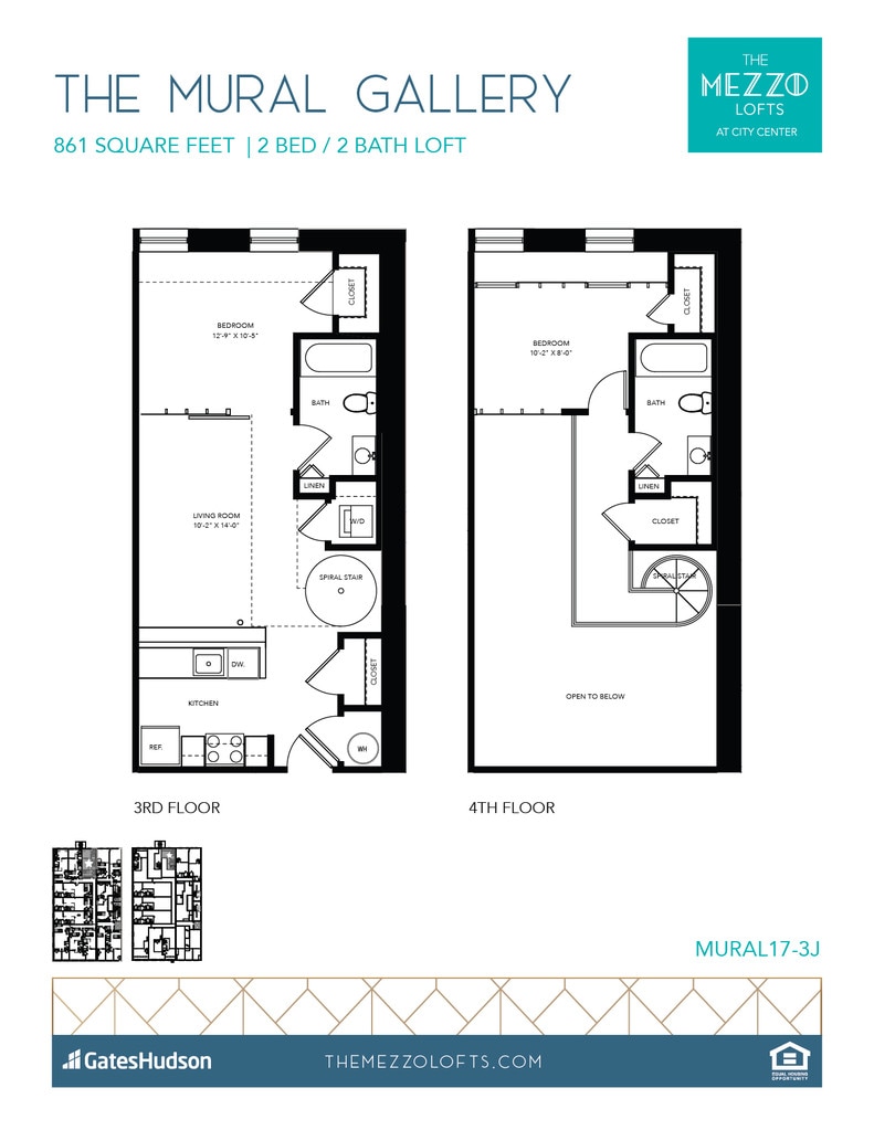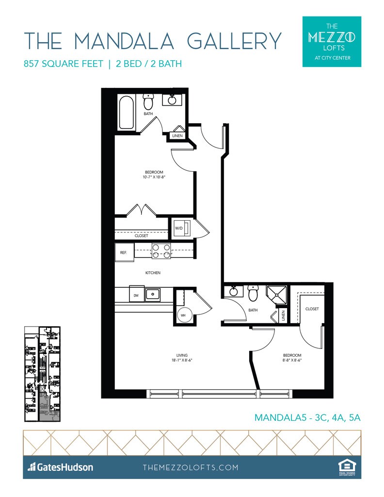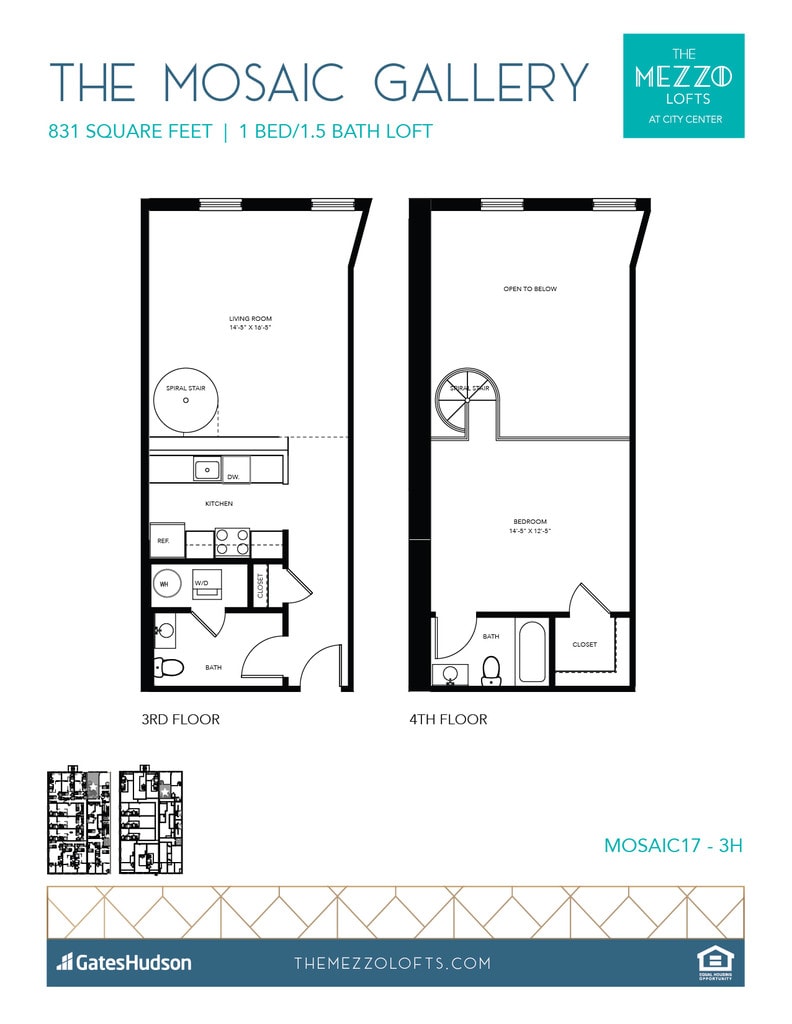 The Mezzo Lofts offers Studio to 3 Bedroom apartments starting from $970 and having 381–1,779 sq ft. Here is the current pricing and availability: