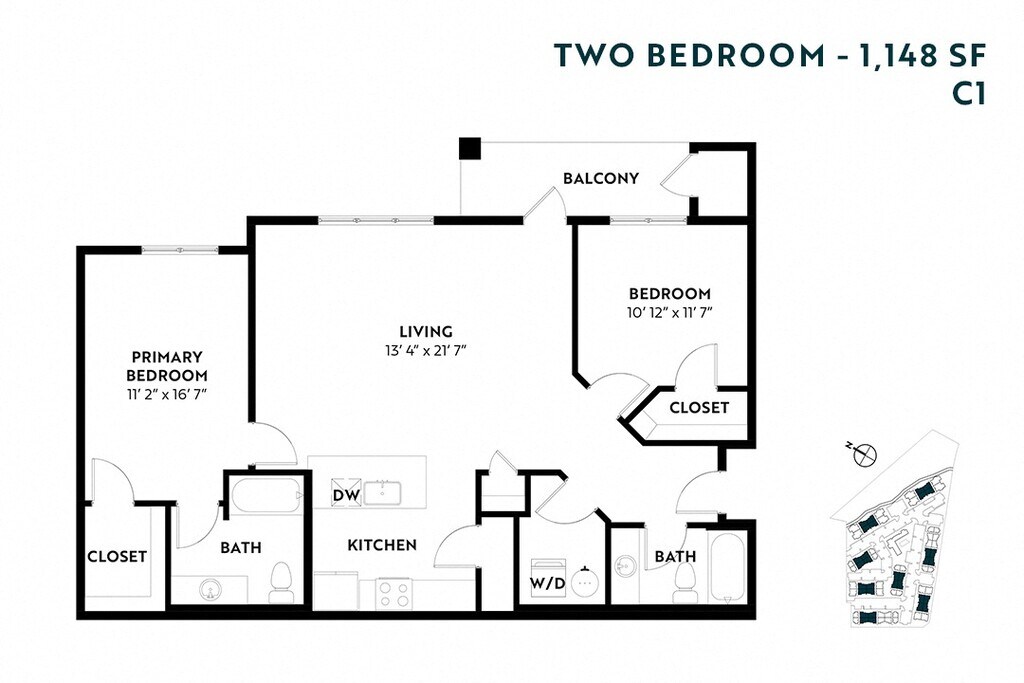 Apartment Model: Two Bedroom C1$2,5392 Bedroom, 2 Bath, 1148 sq ftAvailable Now![]()