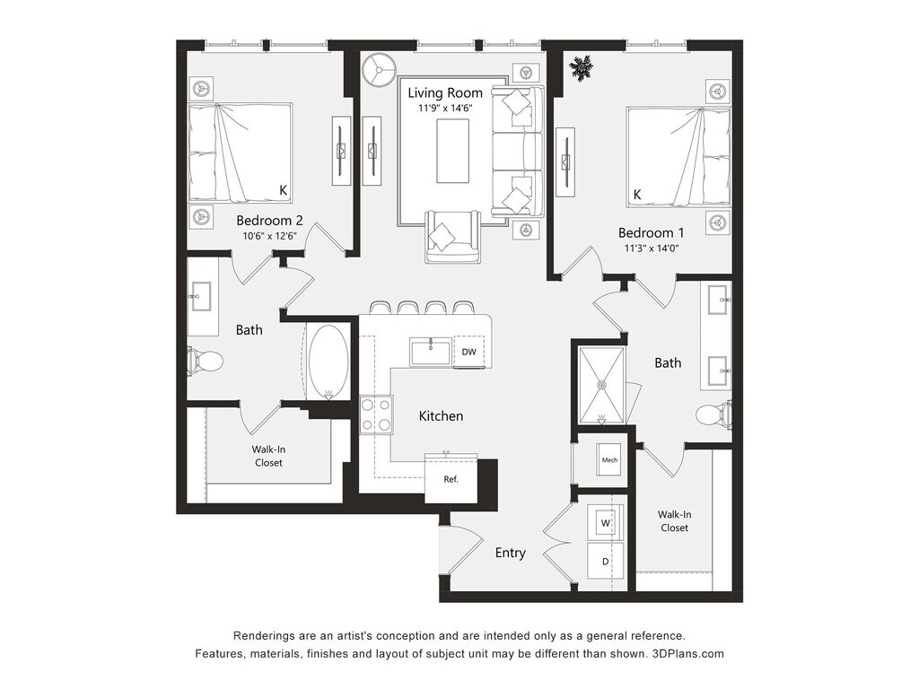 1 Bed, 1 Bath, 673 sq ftAvailable NowModel Gallery