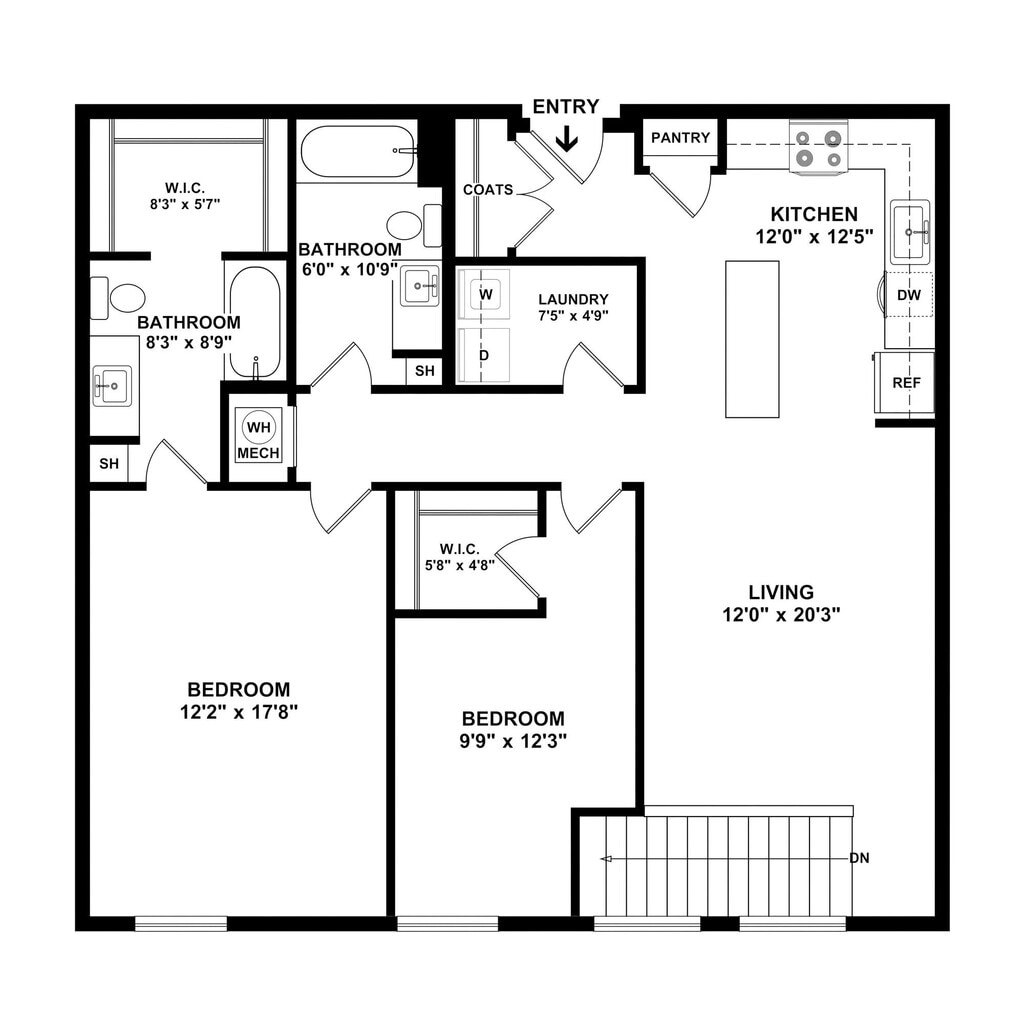 Dozier - Floorplan 3 2 Bedrooms