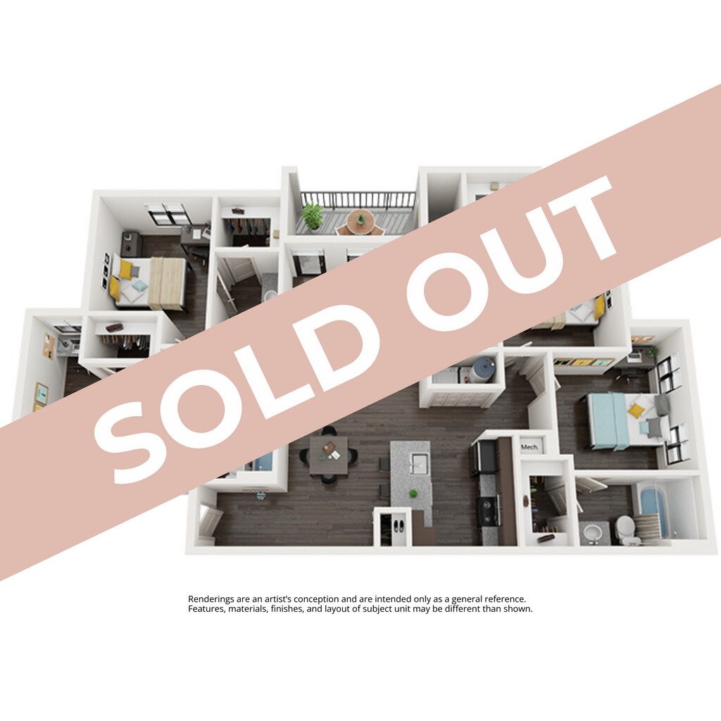 Apartment Model: 3BR/3BA - C1 Standard$7103 Bedroom, 3 Bath, 1173 sq ftAvailable August 11, 2026![]()