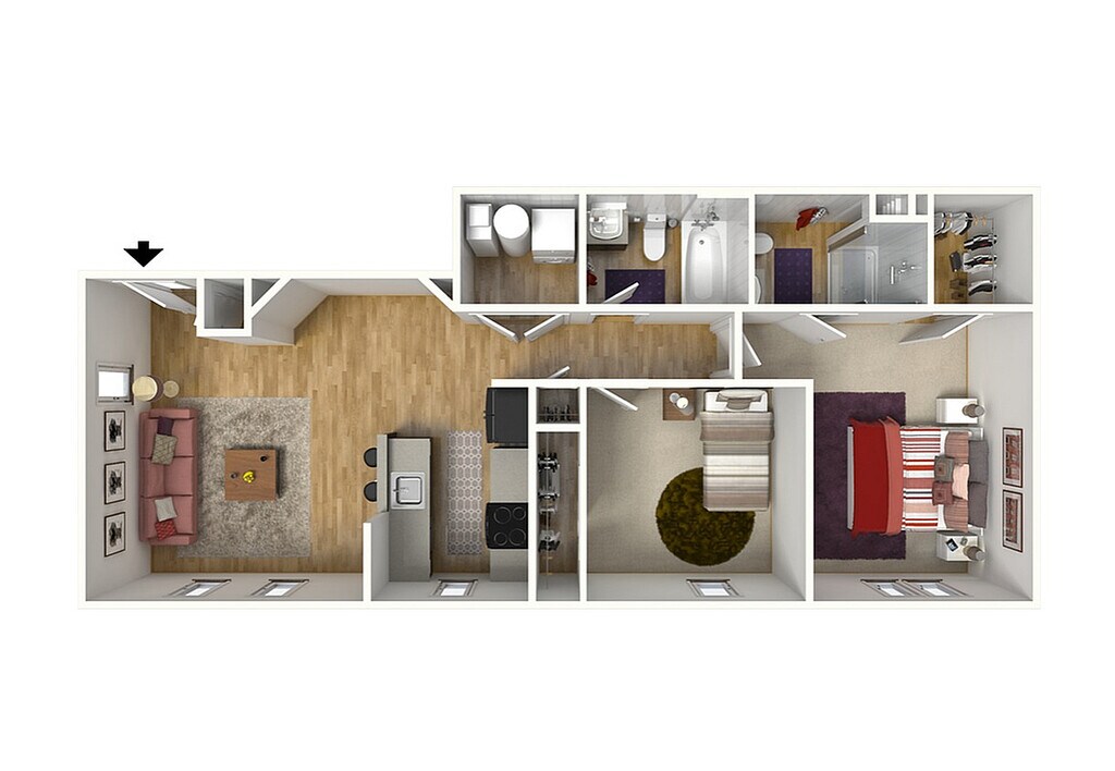 2 Beds, 2 Baths, 1024 sq ftAvailable NowModel Gallery