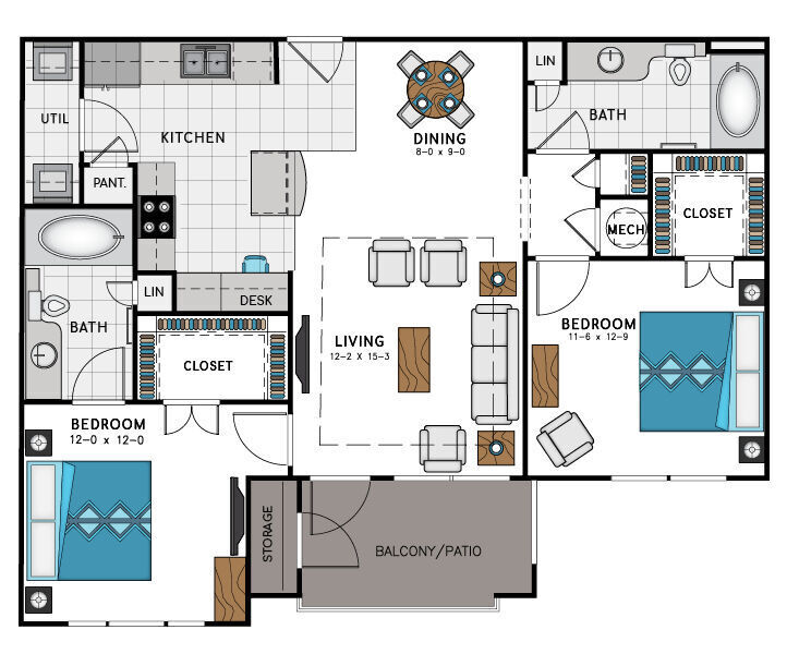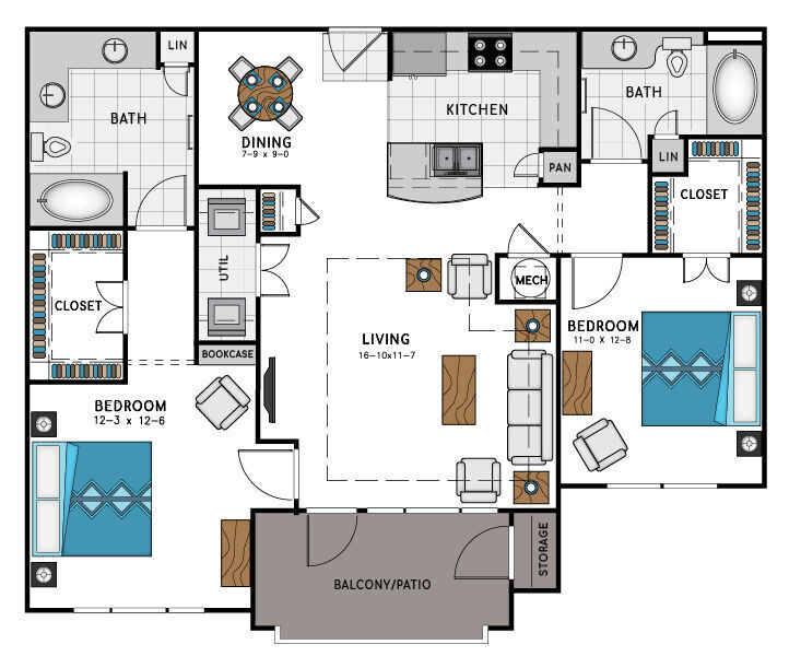 Apartment Model: A3From $1,8991 Bedroom, 1 Bath, 823 sq ftAvailable Now![]()