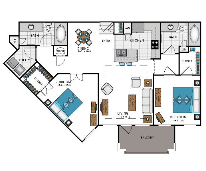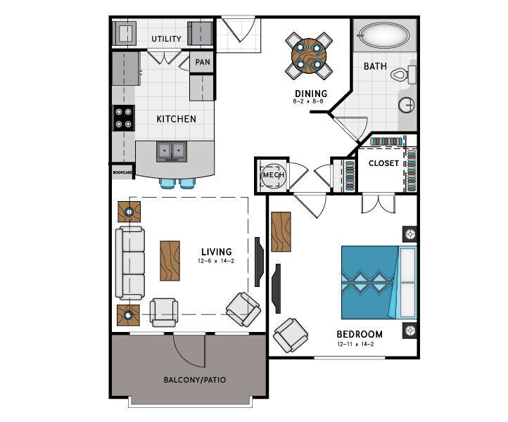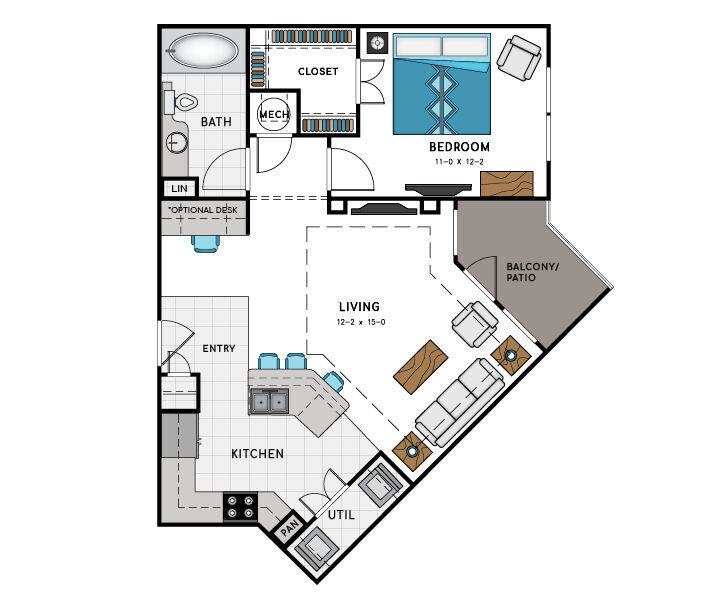 1 Bed, 1 Bath, 823 sq ftAvailable NowLargest 1 BedroomThis is the largest 1 Bedroom at this PropertyModel Gallery
