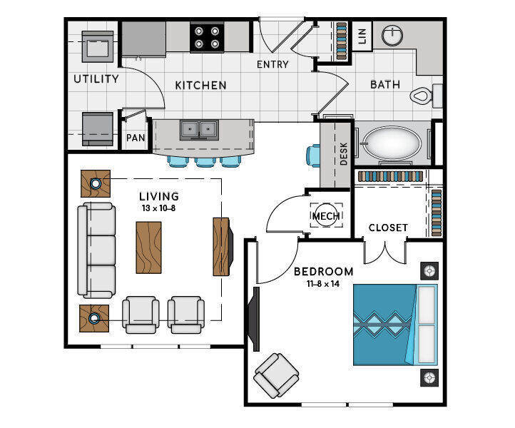 1 Bed, 1 Bath, 810 sq ftAvailable NowModel Gallery