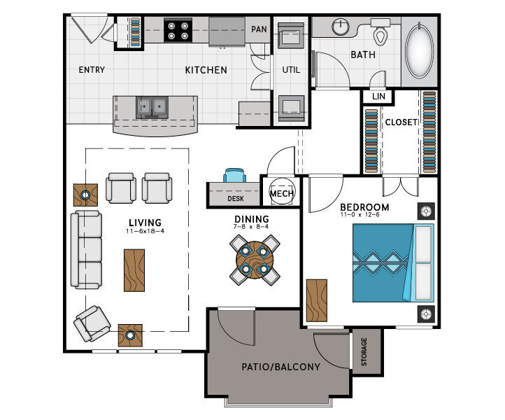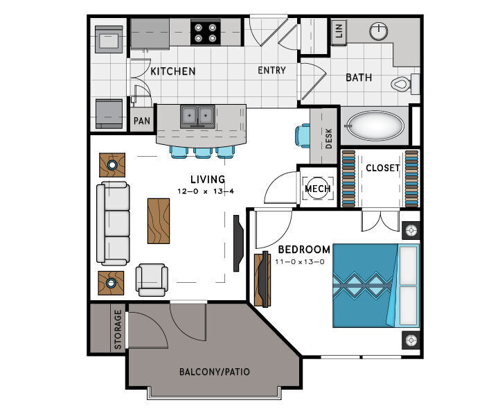 Apartment Model: A4From $1,8191 Bedroom, 1 Bath, 769 sq ftAvailable Now![]()