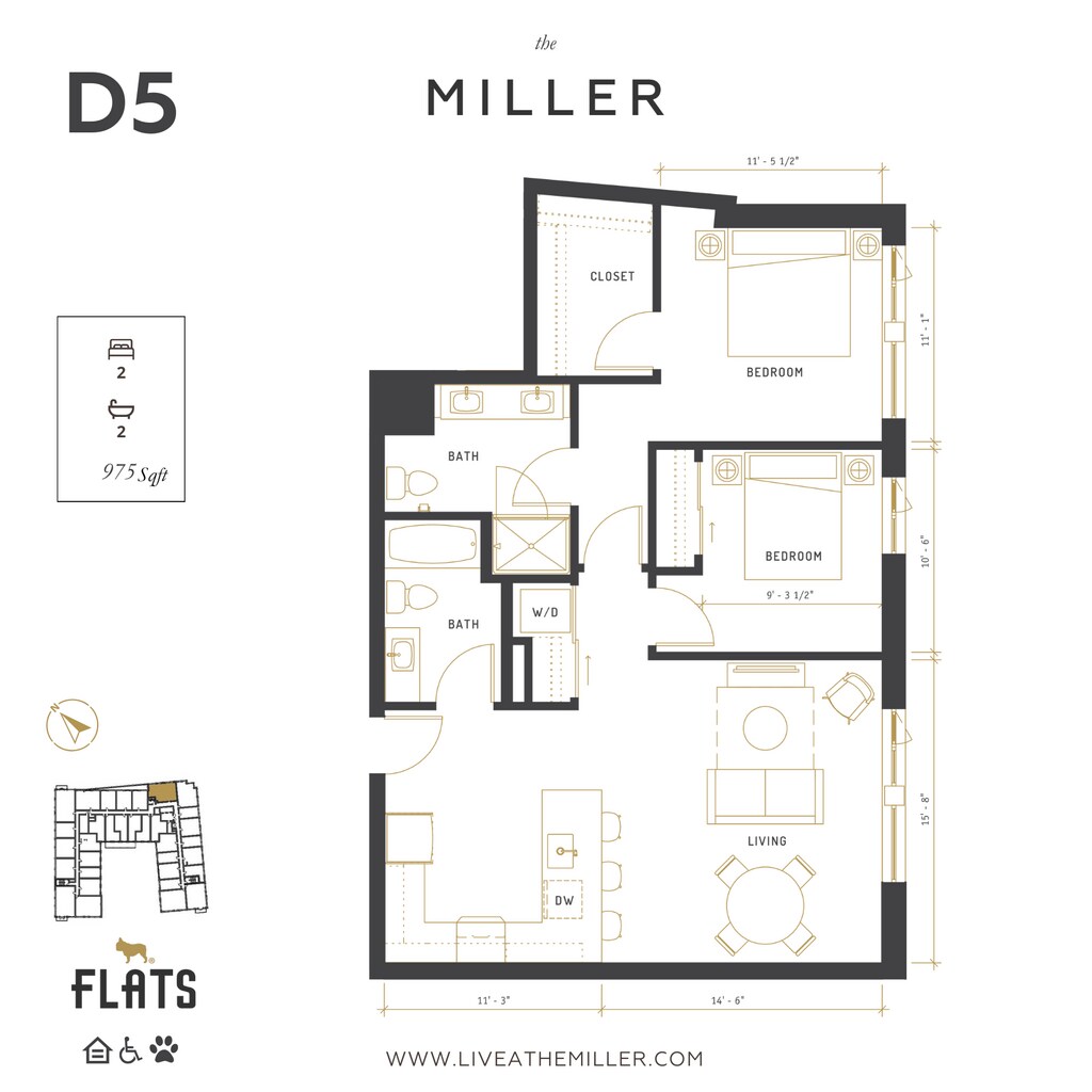 The Miller offers Studio to 2 Bedroom apartments starting from $1,467 and having 428–1,069 sq ft. Here is the current pricing and availability: