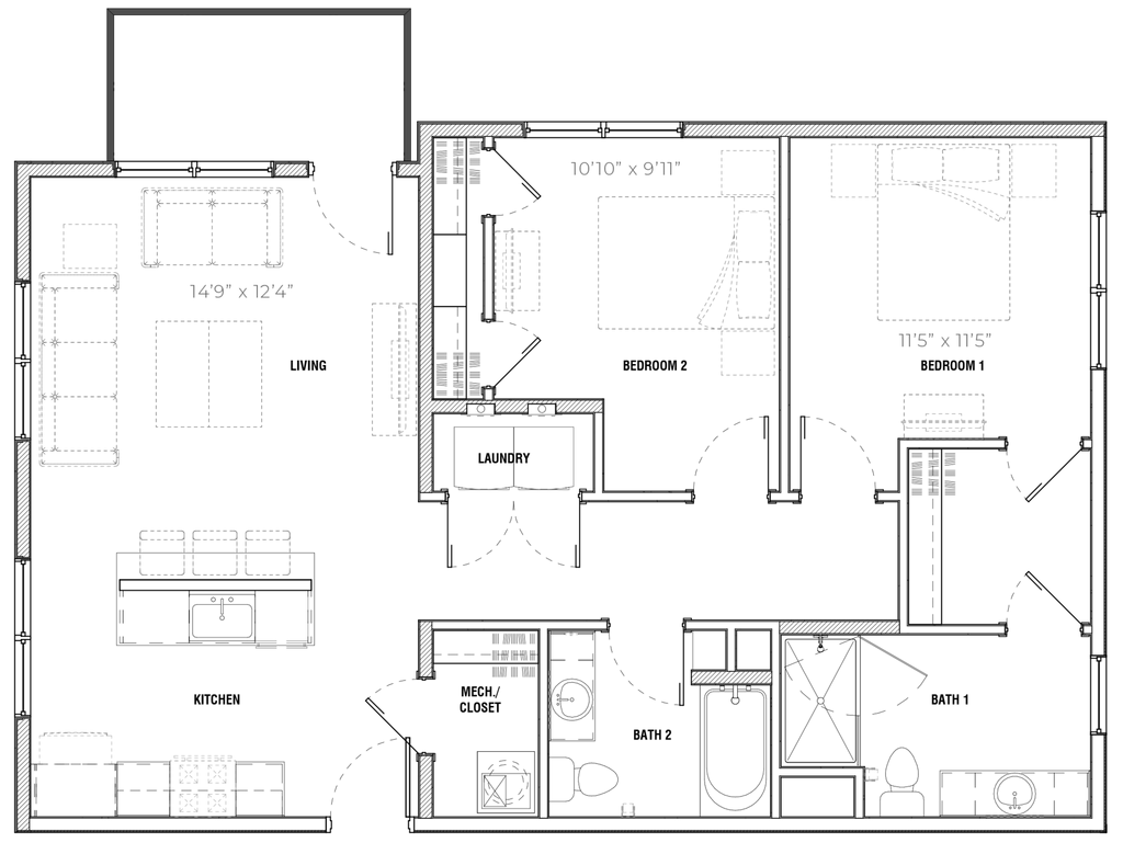 2 Beds, 2 Baths, 1081 sq ftModel Gallery