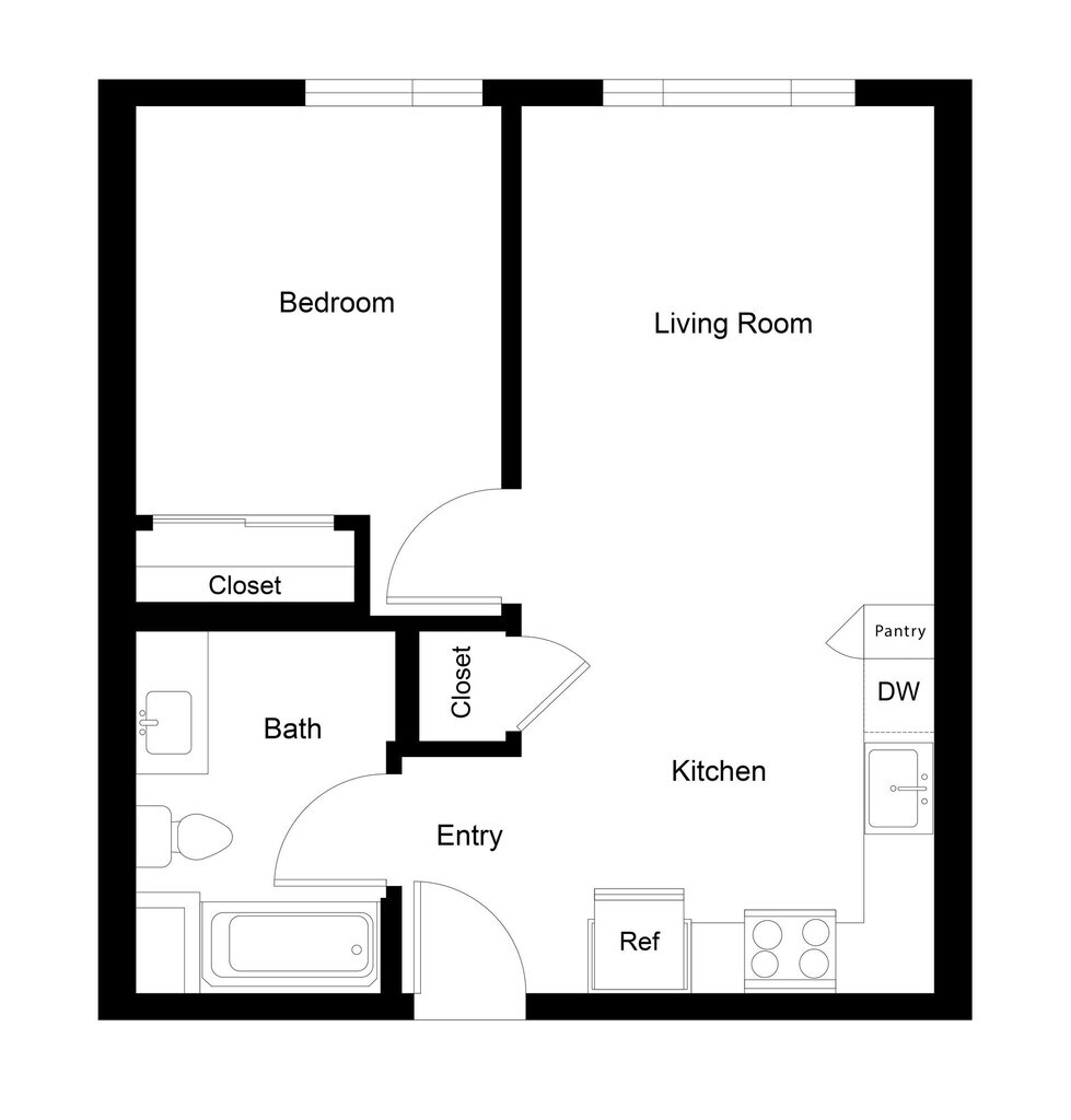 S3 - Floorplan 1 Apartment Unit: 213Apartment Model: S3Studio, 1 Bath, 412 sq ftAvailable February 13, 20261 Bedroom