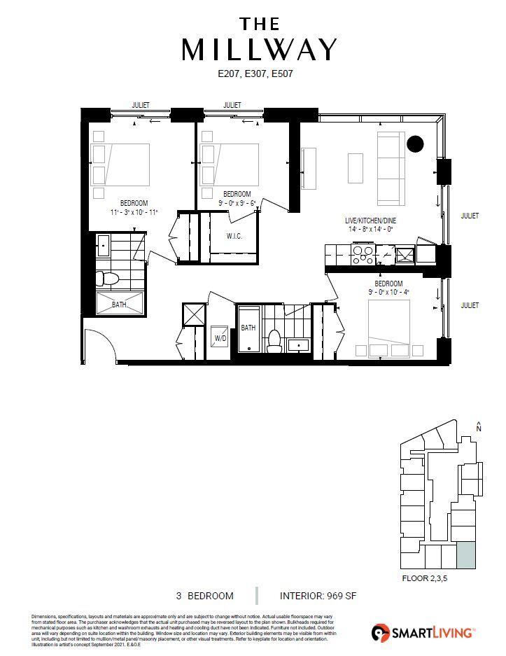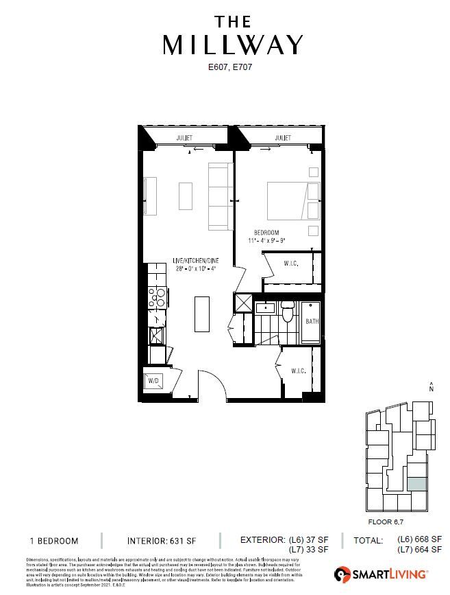 The Millway offers 1 to 2 Bedroom apartments starting from $2,300 and having 618–822 sq ft. Here is the current pricing and availability: