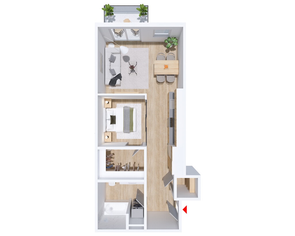 Open 1-Bed A - Floorplan 1 Apartment Unit: 203Apartment Model: Open 1-Bed A$2,6171 Bedroom, 1 Bath, 616 sq ftAvailable NowOpen 1-Bed D