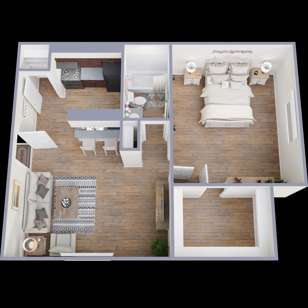 1 Bed, 1 Bath, 576-667 sq ftAvailable NowModel Gallery