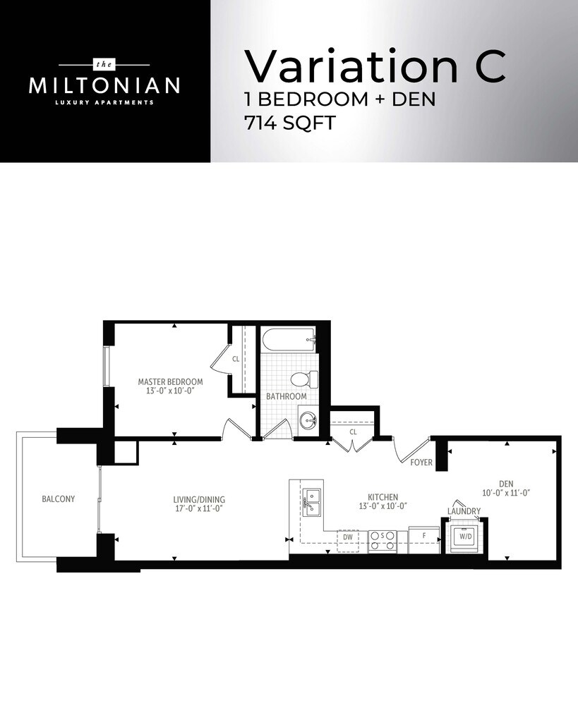 1 Bed Den 1 Bath C - Floorplan 1 1 Bed 1 Bath B