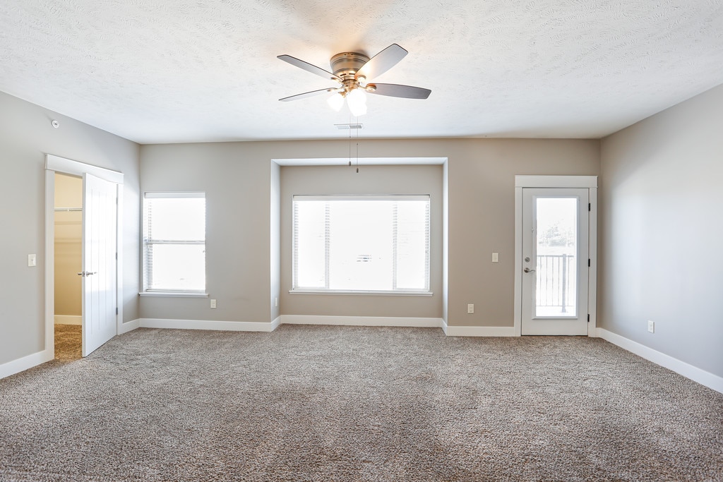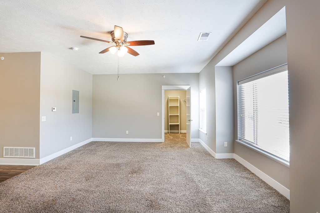 - Ceiling fans in bedrooms and living area