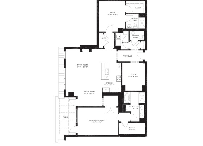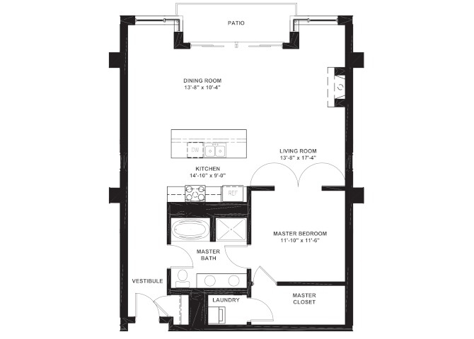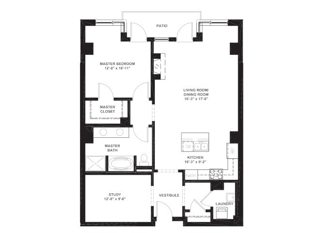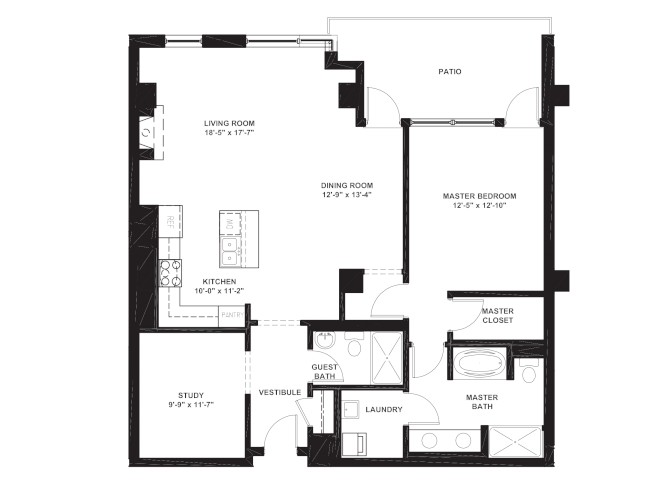 1 Bed 1 Bath - Floorplan 1 1 Bed 1 Bath with Den
