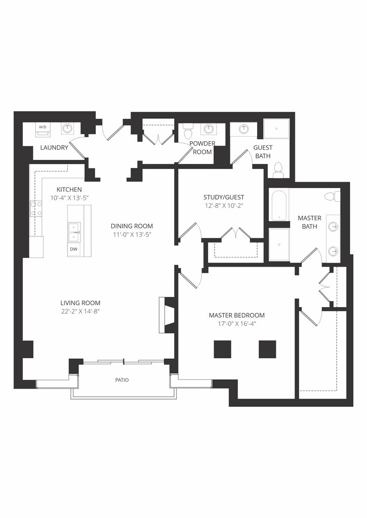 1 Bed 1.5 Baths - Floorplan 1 2 Bedrooms