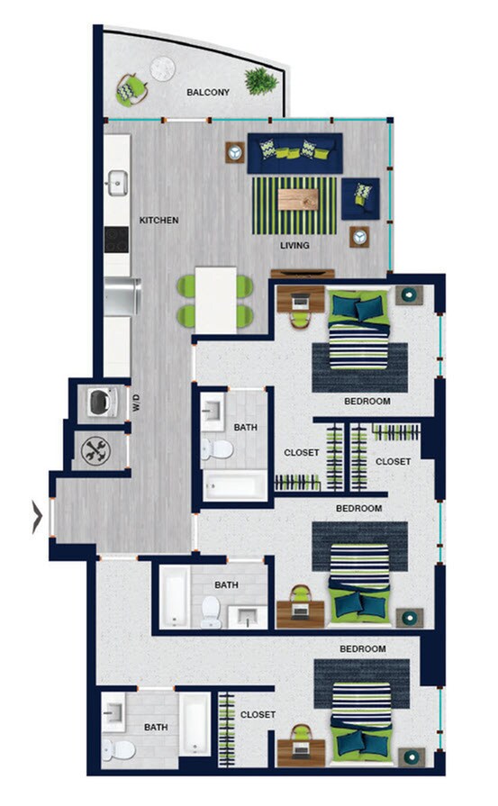 Apartment Model: B3$1,3202 Bedroom, 2 Bath, 849 sq ftAvailable NowB3 - Floorplan 1 Apartment Unit: SkylineApartment Model: B3$1,3202 Bedroom, 2 Bath, 849 sq ftAvailable Now3 Bedrooms