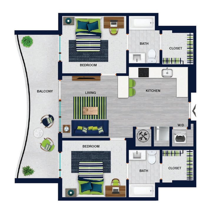 2 Beds, 2 Baths, 849 sq ftAvailable NowModel Gallery