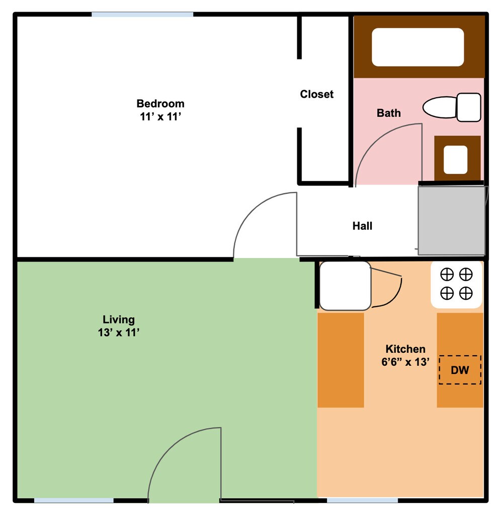 Apartment Model: One Bed One Bath A1 Bedroom, 1 Bath, 525 sq ftUnavailableFloorplansPhotos![]()
