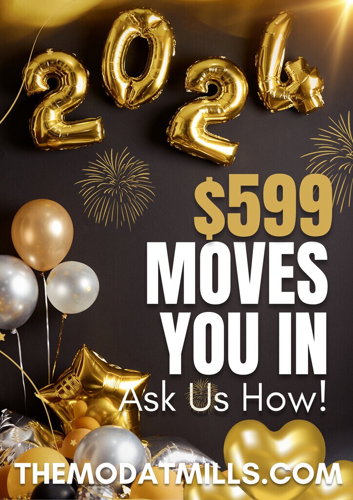 The current rent special at The Mod at Mills is: Look & Lease!~~Get $500 off your first two months' rent when you Look & Lease by 11/30/2025! Conditions apply!.