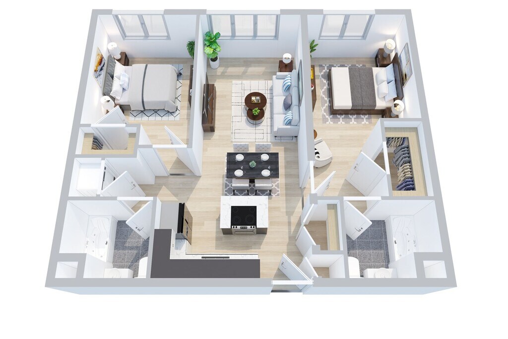 Apartment Model: 2BR Type B$2,5202 Bedroom, 2 Bath, 1044 sq ftAvailable NowFloorplansPhotos![]()