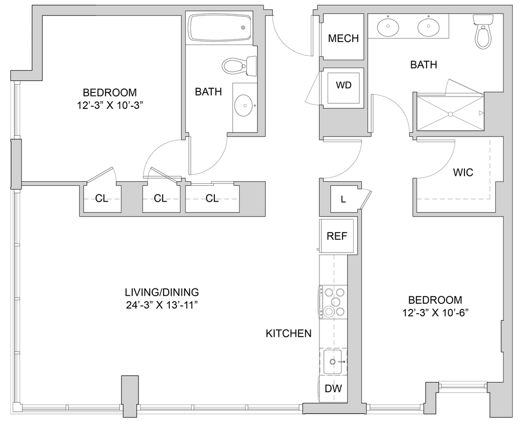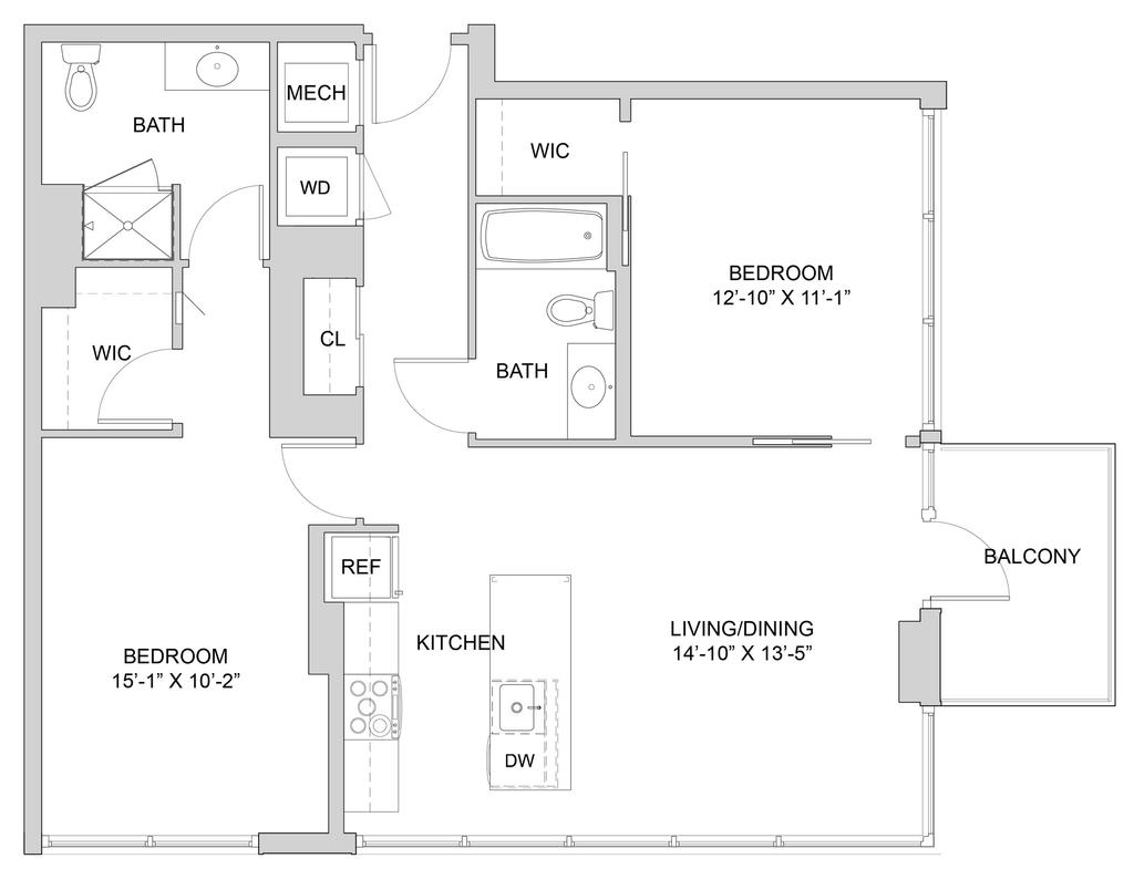 1 Bed, 1 Bath, 645 sq ftAvailable NowModel Gallery