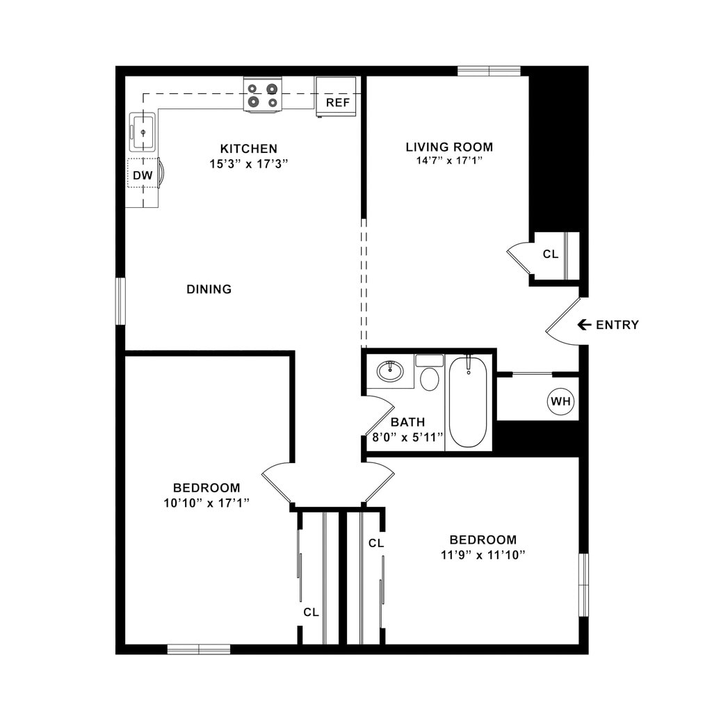 2 Beds, 1 Bath, 1060 sq ftLargest 2 BedroomThis is the largest 2 Bedroom at this PropertyModel Gallery