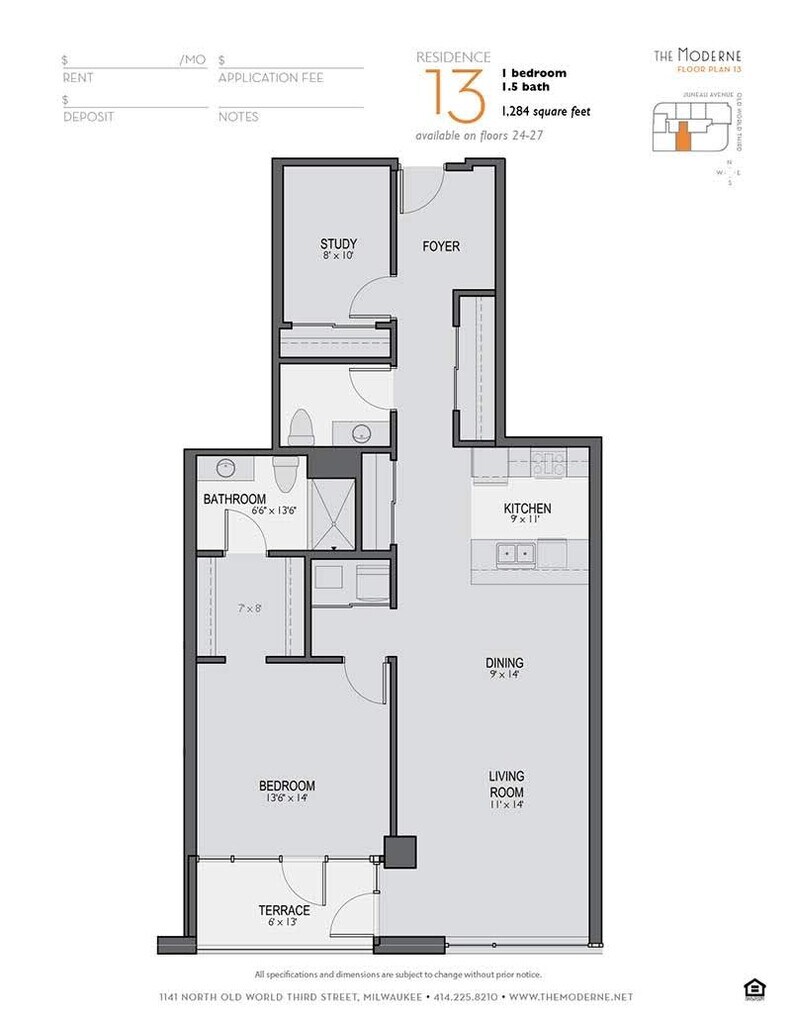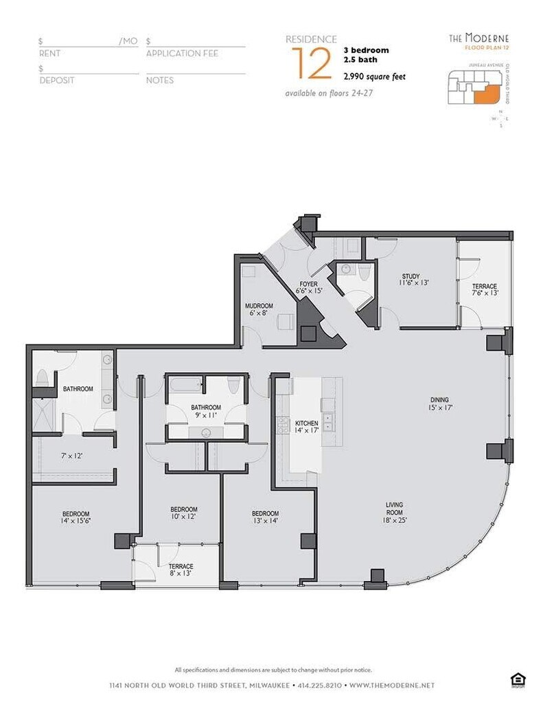 The Moderne offers 1 to 3 Bedroom apartments starting from $1,770 and having 732–2,990 sq ft. Here is the current pricing and availability: