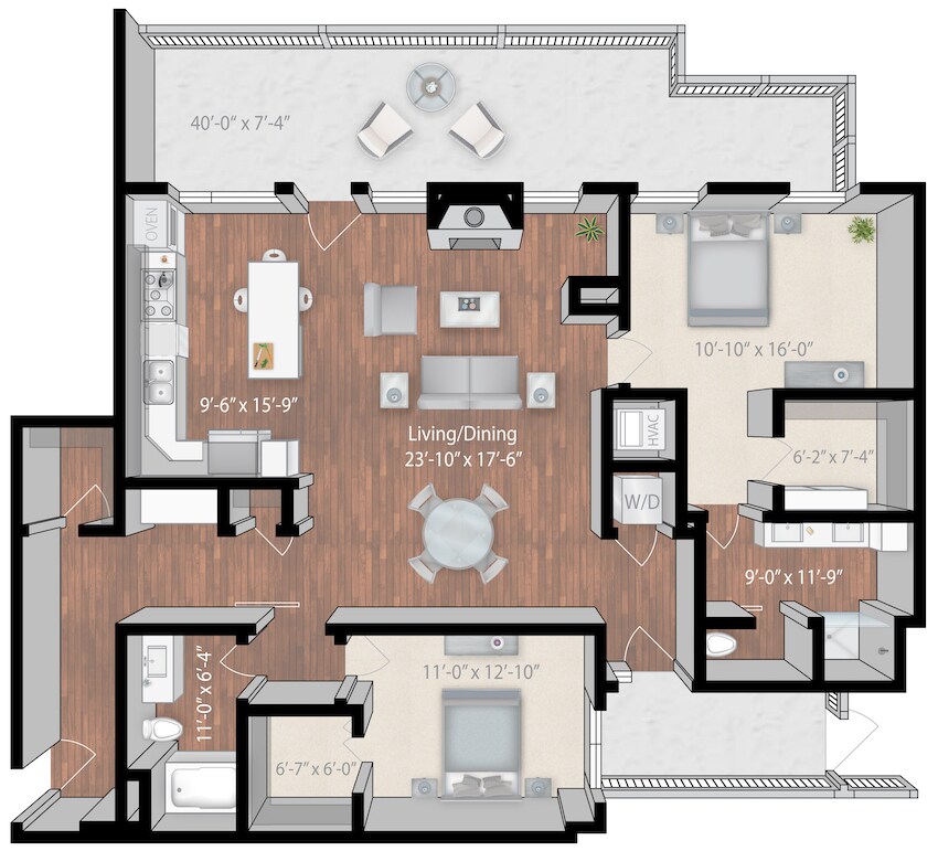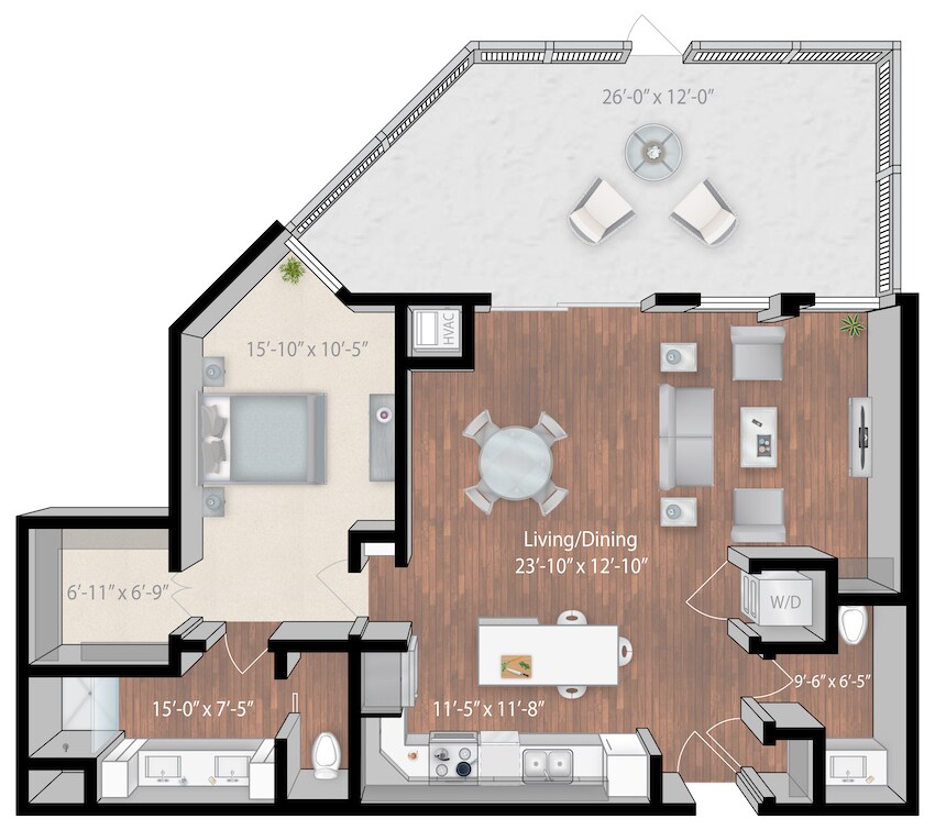 1 Bed, 1 Bath, 758 sq ftPlus FeesAvailable NowModel Gallery