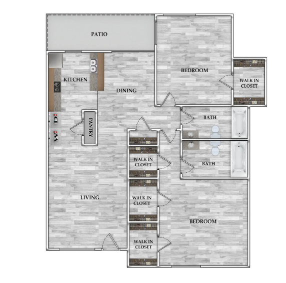 2 Beds, 1 Bath, 810 sq ftAvailable NowModel Gallery