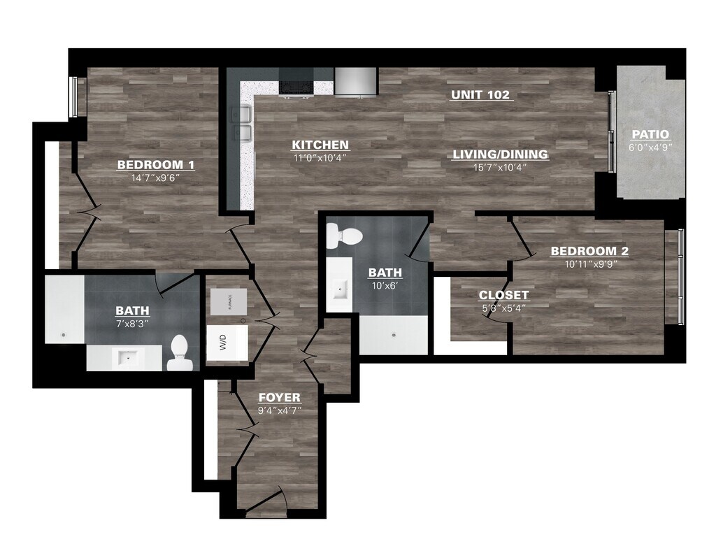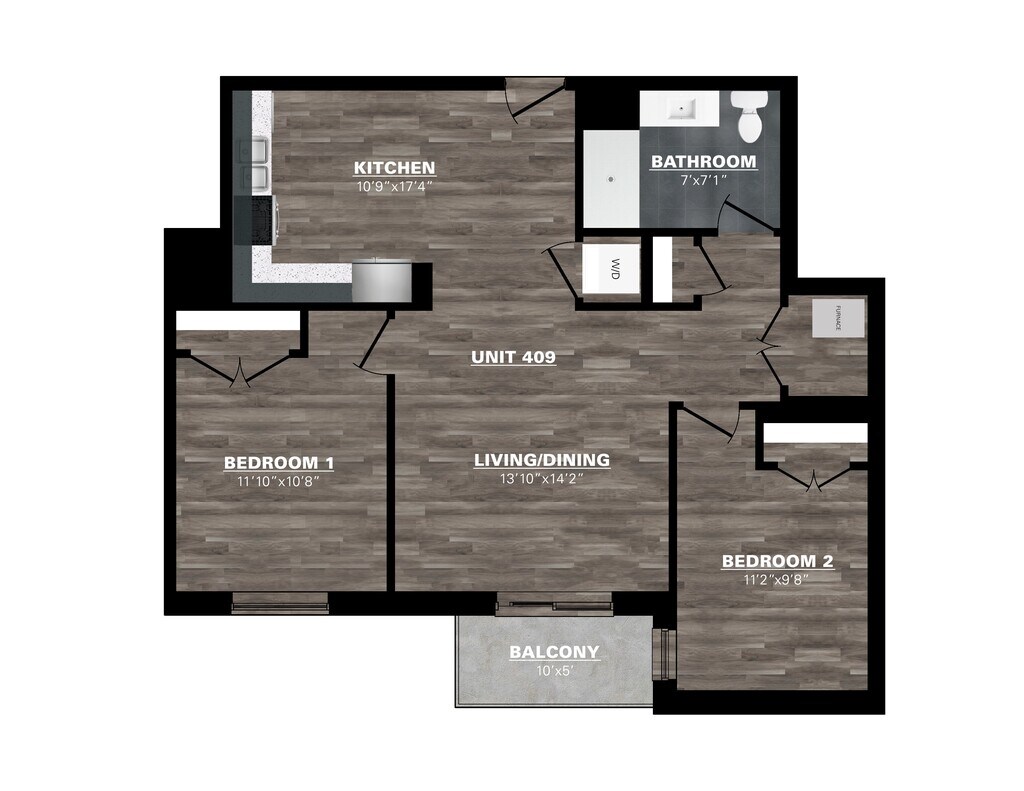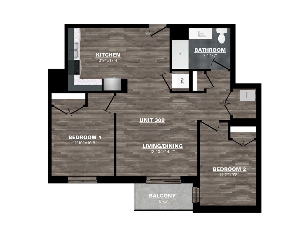 2 Bedroom - 1 Bathroom - Floorplan 2 2 Bedroom - 2 Bathroom