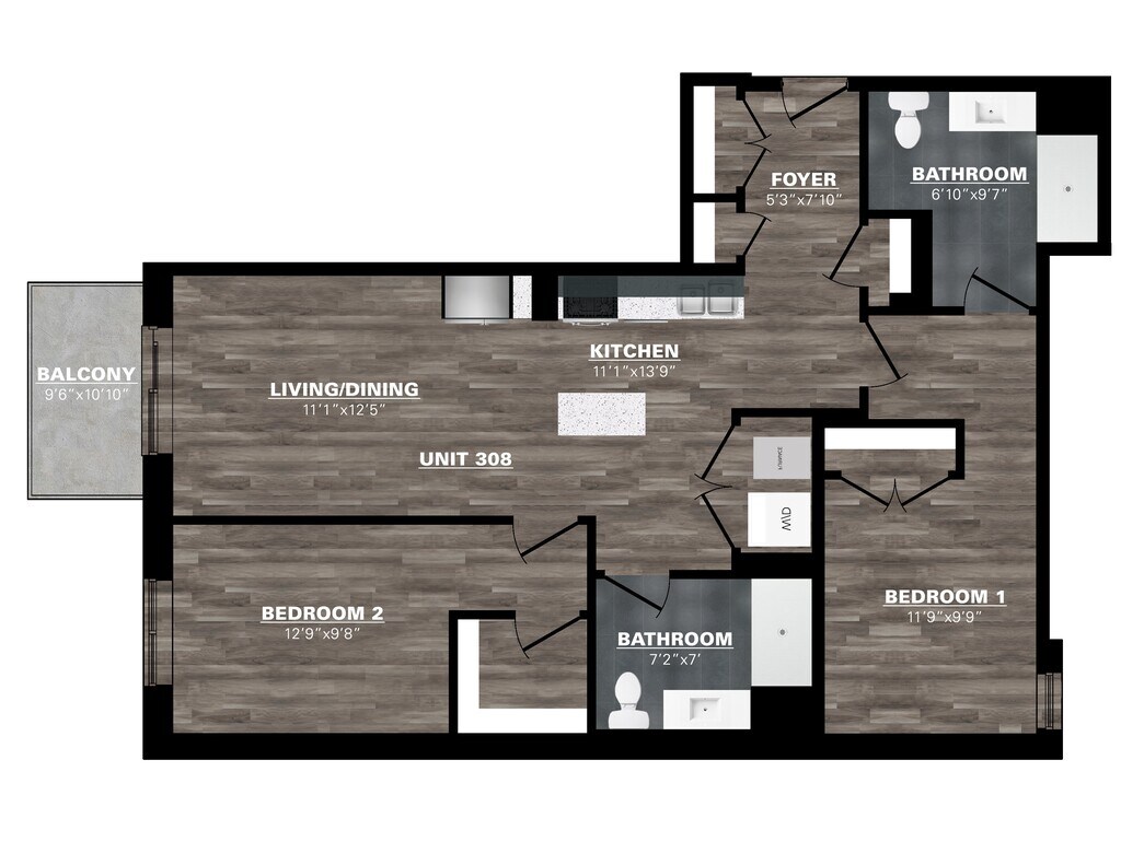 2 Bedroom - 2 Bathroom - Floorplan 3